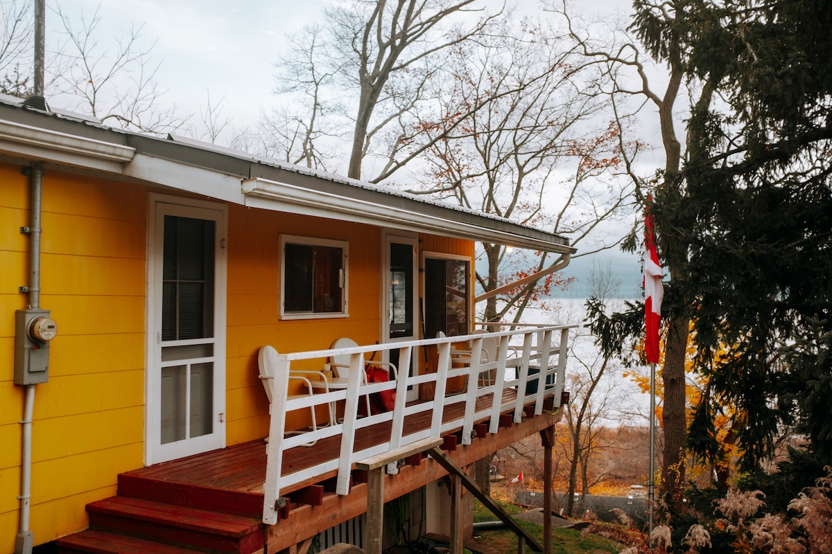 Ištisus metus gražus jaukus 3 miegamųjų kotedžas. Patogiai miega 6 kartus. Atsipalaiduokite ir mėgaukitės išskirtiniais Erie ežero vaizdais. Pabuskite iki gražiausio saulėtekio. Skrudinkite zefyrus ant laužavietės. Kepsniai ant grotelių, Wi-Fi. Puiki vieta vyno darykloms, paukščiams, žvejybai, lankytinoms vietoms, Pelee salai, apsaugos zonoms, pėsčiųjų takams. Apsistokite Point Pelee nacionaliniame parke. Kaimiškas paplūdimys/valtis pėsčiomis. 12 minučių iki Leamingtono ir visko, ko jums reikia.