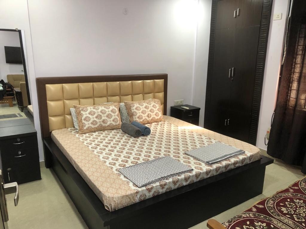 1. Šis visiškai nepriklausomas namas yra antrame aukšte, siūlo jums visišką privatumą ir visą erdvę sau. 2. Prižiūrėtojas visą parą gali suteikti pagalbą vietoje arba telefonu, jei reikia. 3. Mėgaukitės aukščiausiu komfortu su visiškai naujais 8 colių čiužiniais kiekviename kambaryje. 4. Galima naudotis virtuve maisto ruošimui už 500 INR per dieną, mokama vietoje. 5. Nurodytas įkainis taikomas tik dviem svečiams viename kambaryje. Trečiajam arba papildomam svečiui yra skirtas papildomas kambarys, už kurį taikomi Airbnb nustatyti mokesčiai.