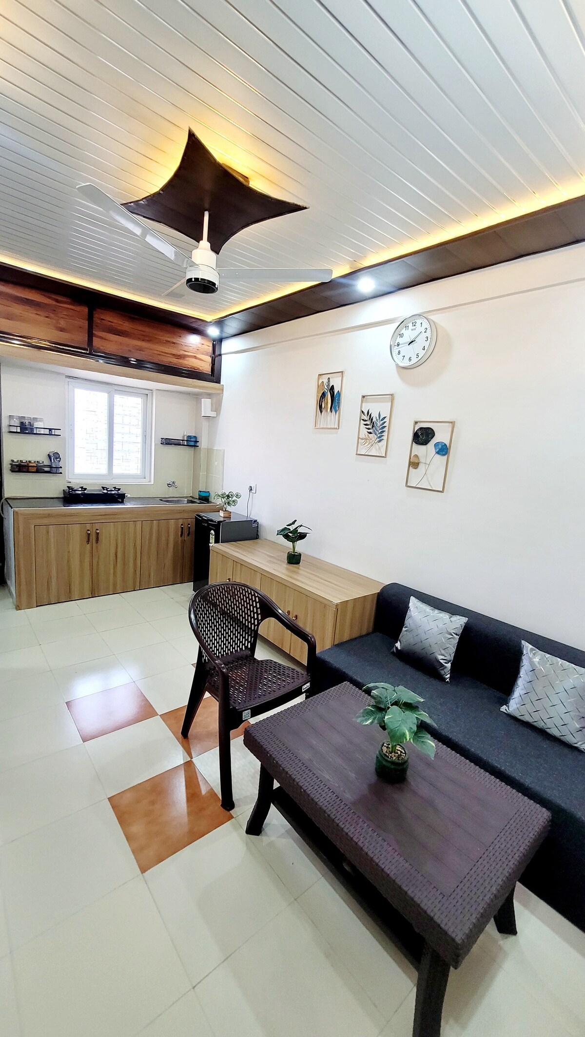 Stilingas ir ramus 1BHK | Tinka šeimoms | Šiuolaikiniai patogumai | Puiki vieta Stilingas, ramus 1BHK pačioje Kanpur širdyje - puikiai tinka šeimoms ar pavieniams keliautojams. Mėgaukitės modernia svetaine su televizoriumi ir belaidžiu internetu, pilnai įrengta virtuve ir aptakiu vonios kambariu. Jaukiame miegamajame siūlomas komfortas ir daiktų laikymas. Įsikūręs ramioje vietoje, tačiau netoli gyvybingo turgaus su parduotuvėmis ir valgyklomis. Idealiai tinka trumpalaikėms arba ilgalaikėms viešnagėms su visais būtiniausiais patogumais patogiam vizitui.