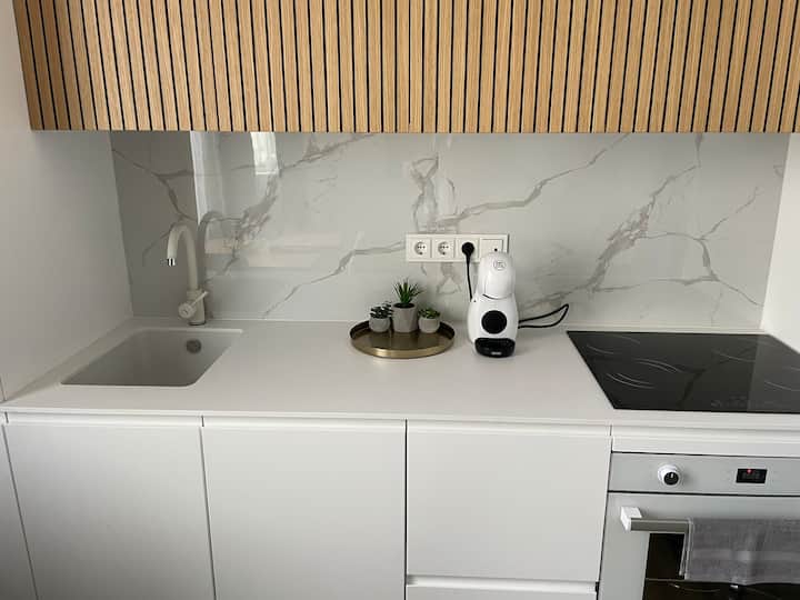 Bus lengva tinkamai pradėti rytą, nes čia yra kavos aparatas ir rankinis kavos aparatas.