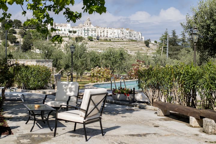 Iš didelio sodo atsiveria vaizdas į nuostabų baseiną, iš kurio galite pasigrožėti nuostabiu Valle d 'Itria ir Locorotondo kraštovaizdžiu.