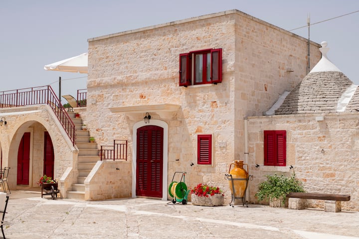 Iš Trulli Bruni atsidursite viename gražiausių Locorotondo kraštovaizdžių. La Masseria yra žavingas istorinių trulių ir akmeninių konstrukcijų kompleksas, skirtas išskirtiniam naudojimui, renovuotas pagal Apulijos architektūros kanonus, kur aidi praeities garsai, kvapai ir emocijos. Ši elegantiška gyvenamoji vieta, unikali savo stiliumi, idealiai tinka šeimoms ir draugų grupėms, norinčioms praleisti visiško atsipalaidavimo ir privatumo patirtį vos už kelių žingsnių nuo miesto.