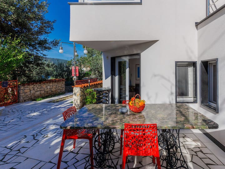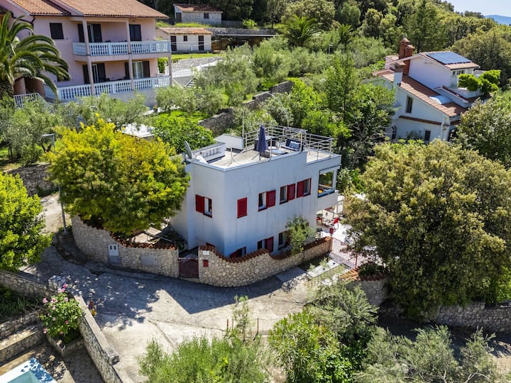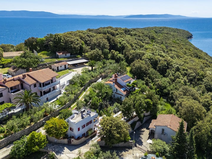 Prtlog (Duga Luka) už 5 km nuo Labino: 2 šeimų namas „Villa Dragica“, 2 aukštų. Saulėtoje vietoje ant šlaito, 80 m iki jūros, 80 m iki paplūdimio, kaime. Privatu: nuosavybė 30 m2 (aptverta) su laukinės gamtos sodu. Lauko dušas, terasa (15 m2), sodo baldai. Namuose: interneto prieiga, stogo terasa, skalbimo mašina. Automobilių stovėjimo aikštelė (2 automobiliams) prie namo teritorijoje. Parduotuvė 5 km, prekybos centras 7 km, restoranas 5 km, autobusų stotelė 5,4 km, akmenuotas paplūdimys 800 m, uolėtas paplūdimys 80 m. Atkreipkite dėmesį: oro uostas už 45 km. 150 žingsnių iki uolėto paplūdimio.
