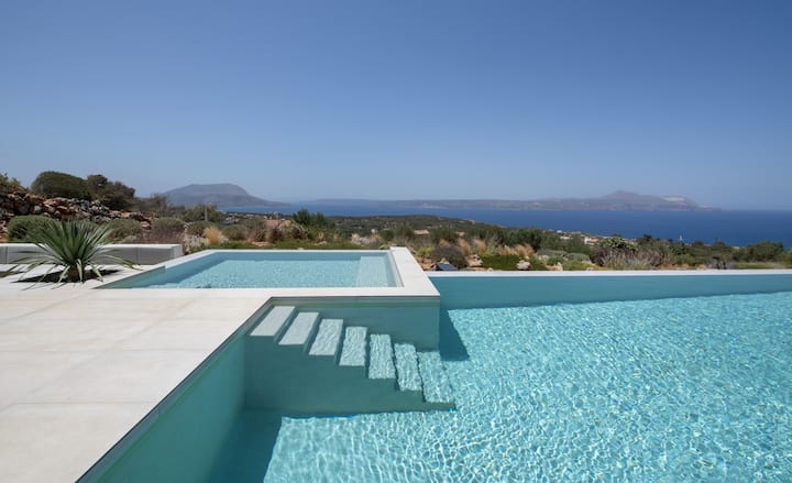 Vila su vaizdu į jūrą|Bekraštis baseinas|Sūkurinė vonia|Jogos denis|Sporto salė