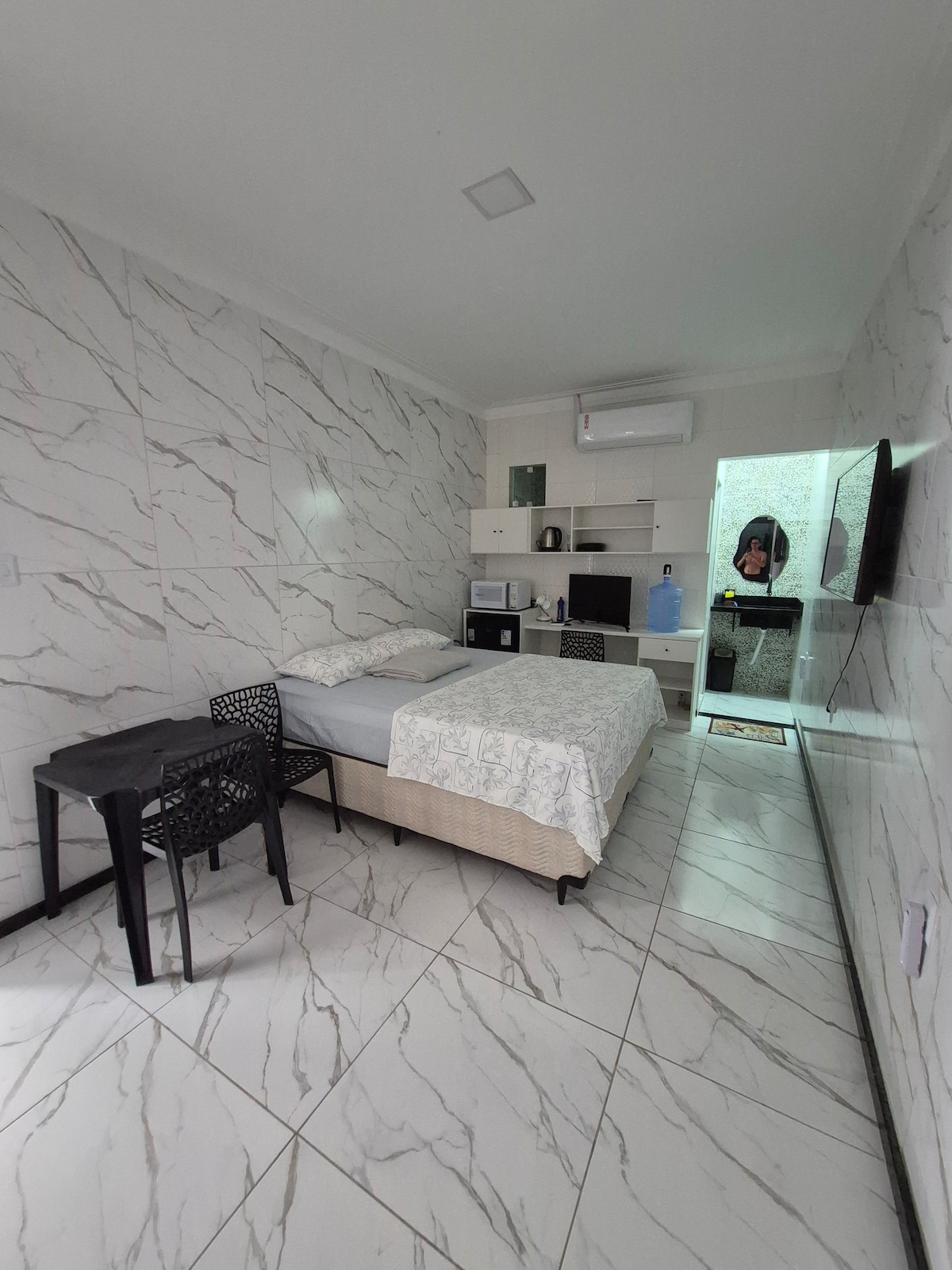 Sveiki ir sveiki atvykę! =) Mano skelbimas yra iš miegamojo su apartamentais svečių namuose, prijungtuose prie mano namų. Apsistokite pas mane geriausiame Aracaju rajone! ⭐️⭐️⭐️⭐️⭐️Čia rasite kambarį, kuriame yra: dvigulė lova, oras, televizorius, privatūs apartamentai su karštu dušu ir lova bei vonios patalyne. Oi, kita detalė: kadangi erdvė tinka svečiams, galite paruošti maistą virtuvėje su puodais ir keptuvėmis, indais, kavos aparatu, mikrobangų krosnele ir virykle.