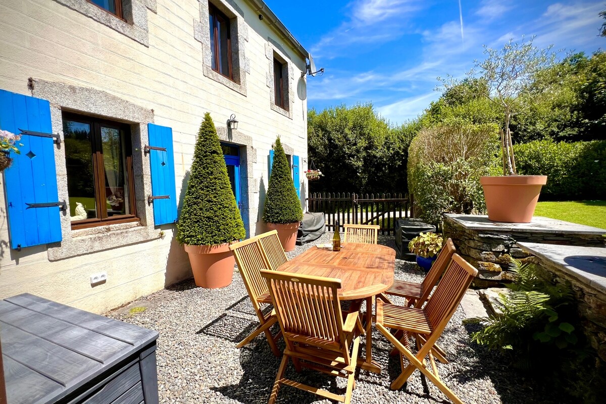 Jolie maison bretonne dans les Monts d'Arrée. a proximité du lac du drennec et ses plages aménagées de La forêt d'huelgoat la vallée des saints de Morlaix et sa baie roscoff Carantec Brest Venez vous ressourcer dans notre maison calme et élégante, rénovée avec goût par nos soins avec des matériaux nobles et naturels ( bois, pierre et mélange chaux et chanvre). !!! Le chargement des voitures électriques et hybrides est totalement interdit ; les prises n'étant pas adaptées (risque d'incendie).