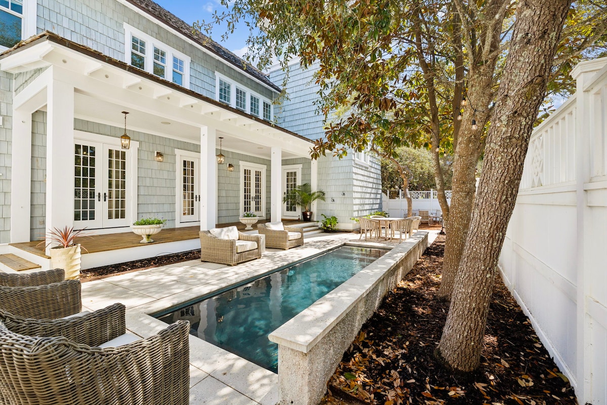 Sadie's Cottage at Rosemary Beach ~ Escape to the ultimate beachside paradise at Sadie’s Cottage, your dreamy getaway in the heart of Rosemary Beach! This stunning property features room for 14 guests in the main house and an additional 4 in the cozy carriage house—ideal for family get-togethers or fun group retreats. Dive into luxury with your own private pool, outdoor shower, and a fireplace that sets the perfect vibe for s’mores under the stars.