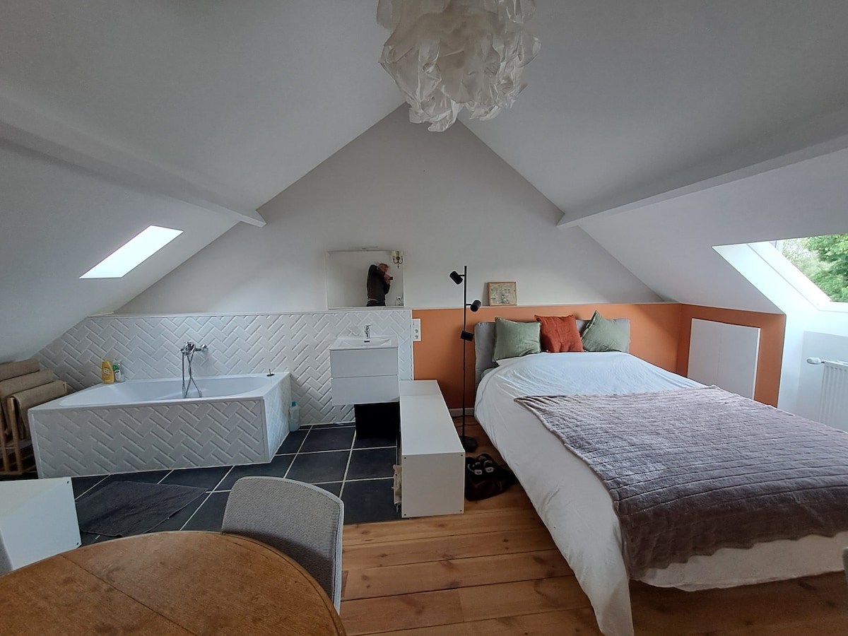 SVEIKI atvykę į mūsų Zen Retreat su sūkurine vonia. Atraskite mūsų gražų kaimą Biez, paslėptą perlą Valonijos Brabante, akmens metimu nuo Leveno, Louvain La Neuve, Briuselio... Beveik dangiška vieta, žalia oazė su gražiu sodu, kur galite atsipalaiduoti, pabėgti, atsipalaiduoti ir visiškai įkrauti. Vienai nakčiai arba (daug) ilgiau, ZenScape Retreat yra išskirtinai jums! Jūsų laukia 38° sūkurinė vonia; taip pat yra chalatai, vonios rankšluosčiai ir šlepetės. Iki pasimatymo ❤️