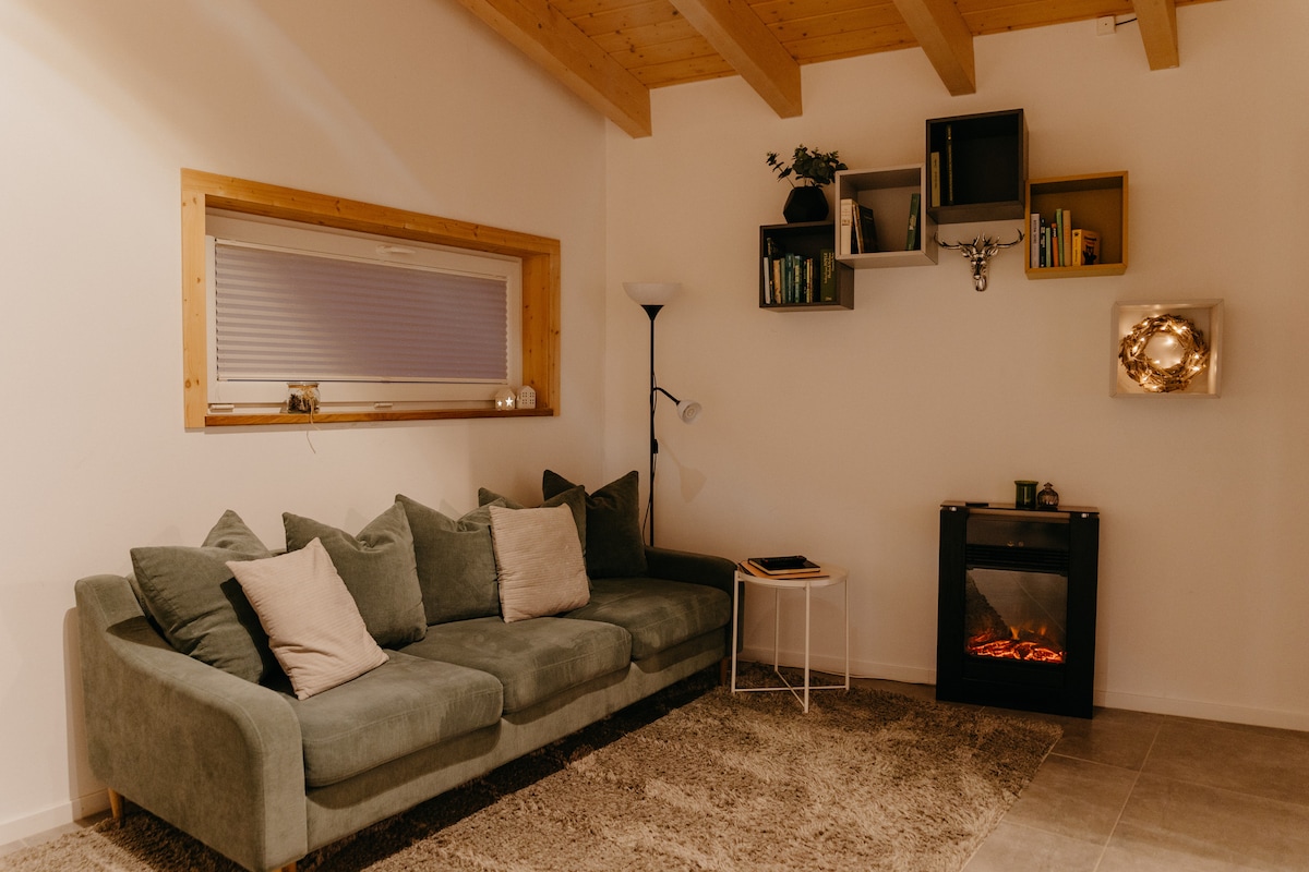 Šis patogus 108 m² pirmo aukšto butas (pritaikytas neįgaliesiems) yra žavingoje kaimo tipo vietovėje miesto pakraštyje, iš kurios lengva pasiekti barokinį Fuldos miestą ir netoliese esantį Riono regioną. Be dviejų miegamųjų ir vaikų kambario, bute yra du vonios kambariai. Erdvi svetainė su 55 colių išmaniuoju televizoriumi, atvira valgomojo zona ir pilnai įrengta virtuve tikrai padarys įspūdį. Jaukios malkomis kūrenamos krosnelės ir vonios atmosferos dėka galėsite atsipalaiduoti ir pailsėti.