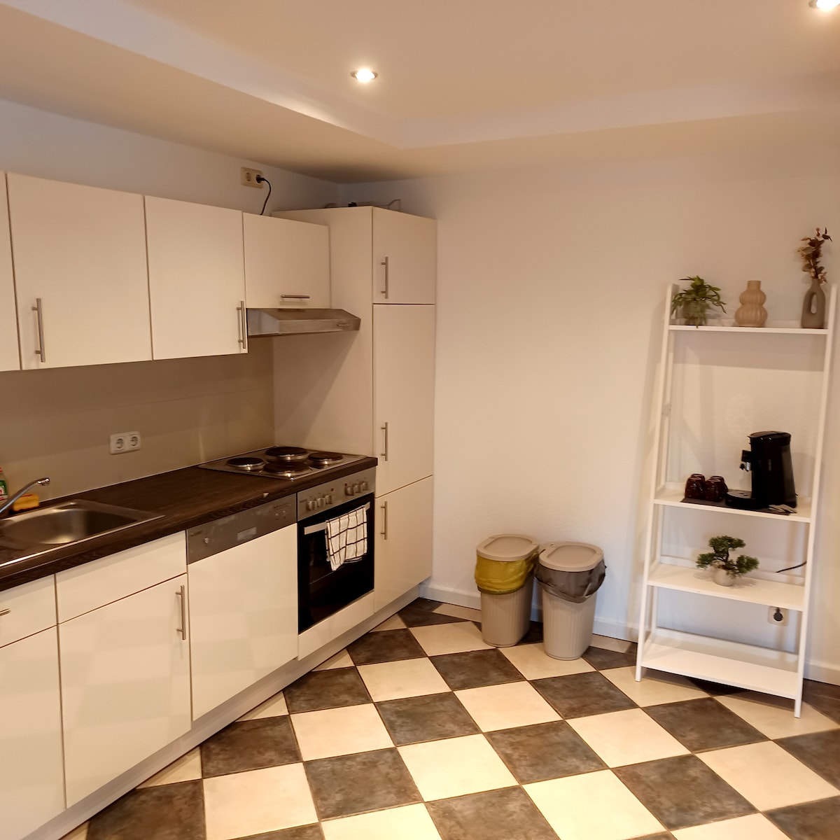 Patirkite neprilygstamą stilių 90 kvadratinių metrų plote Mokka Suite Neumünster, vos už kelių minučių kelio nuo dizainerių centro, traukinių stoties ir Holstenhallen. Du miegamieji su spyruoklinėmis lovomis garantuoja atpalaiduojančias naktis, dušo vonios kambarys skleidžia modernų žavesį su juodais akcentais. Pilnai įrengta virtuvė ir išmanusis televizorius užtikrina patogią viešnagę. Yra privati automobilių stovėjimo aikštelė. Vieta (per kelias minutes) Dizainerių išėjimų centras: 5 Traukinių stotis: 3 Holstenhallen: 7 Hamburgas ir Kylis: 35