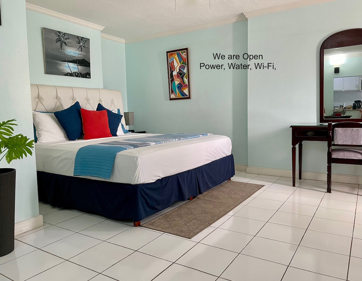 "WELCOME TO YOUR HOME AWAY FROM HOME" A "Romantic"... King Bed unit created with you in mind...Leave the routine behind..And enter this...almost " IDYLLIC" enclave that may tempt you to extend your stay with us. We make it super easy for you to feel like you are the only person in the world. Then not far away you have the world renowned Dunn's River Falls, Mystic Mountain, Dolphin's Cove, Blue Hole and White River Rafting...You may even want to visit Nine Miles ...home village of Bob Marley.