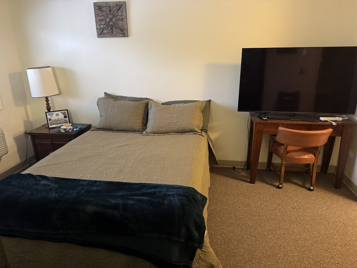 Ivy's Cottage yra įsikūręs trečios kartos galvijų ūkyje, Abingdone, VA, vos už kelių minučių kelio nuo miesto centro ir Creeper tako. Mėgaukitės vaizdingais ūkio vaizdais iš šio jaukaus 2 miegamųjų, 1 vonios kambario būsto. Pagrindiniame miegamajame yra karališko dydžio lova, o patalpa yra atvira ir sujungta su svetaine. Viršutiniame lofte yra du vienguliai čiužiniai, puikiai tinkantys papildomiems svečiams. Erdvioje virtuvėje yra puodai, keptuvės, indai, druska ir pipirai, indaplovė ir šaldytuvas – viskas, ko reikia patogiai viešnagei.