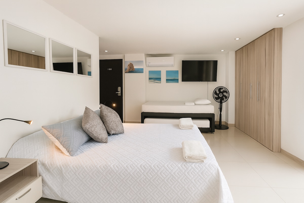 • Šiuolaikiškas, privatus apartamentai komplekse • Didelė privati sūkurinė vonia • Nuostabi vieta Poblado širdyje: „Oazė geriausios miesto dalies apsuptyje, pėsčiomis iki visko“ • 5 min. pėsčiomis iki geriausių restoranų, kavinių. 22 min. pėsčiomis iki Poblado ir Lleras parko • Oro kondicionierius • Karališko dydžio lova, virtuvėlė. • Didelės spartos 200 Mb Wi-Fi • Aplinkui daug gamtos • Skaidrios kainos: nėra paslaugos ar valymo mokesčio • Statybvietėje 24/7 darbuotojai • Baseinas + sūkurinė vonia bendro naudojimo erdvėse, tačiau apartamentuose yra privati sūkurinė vonia
