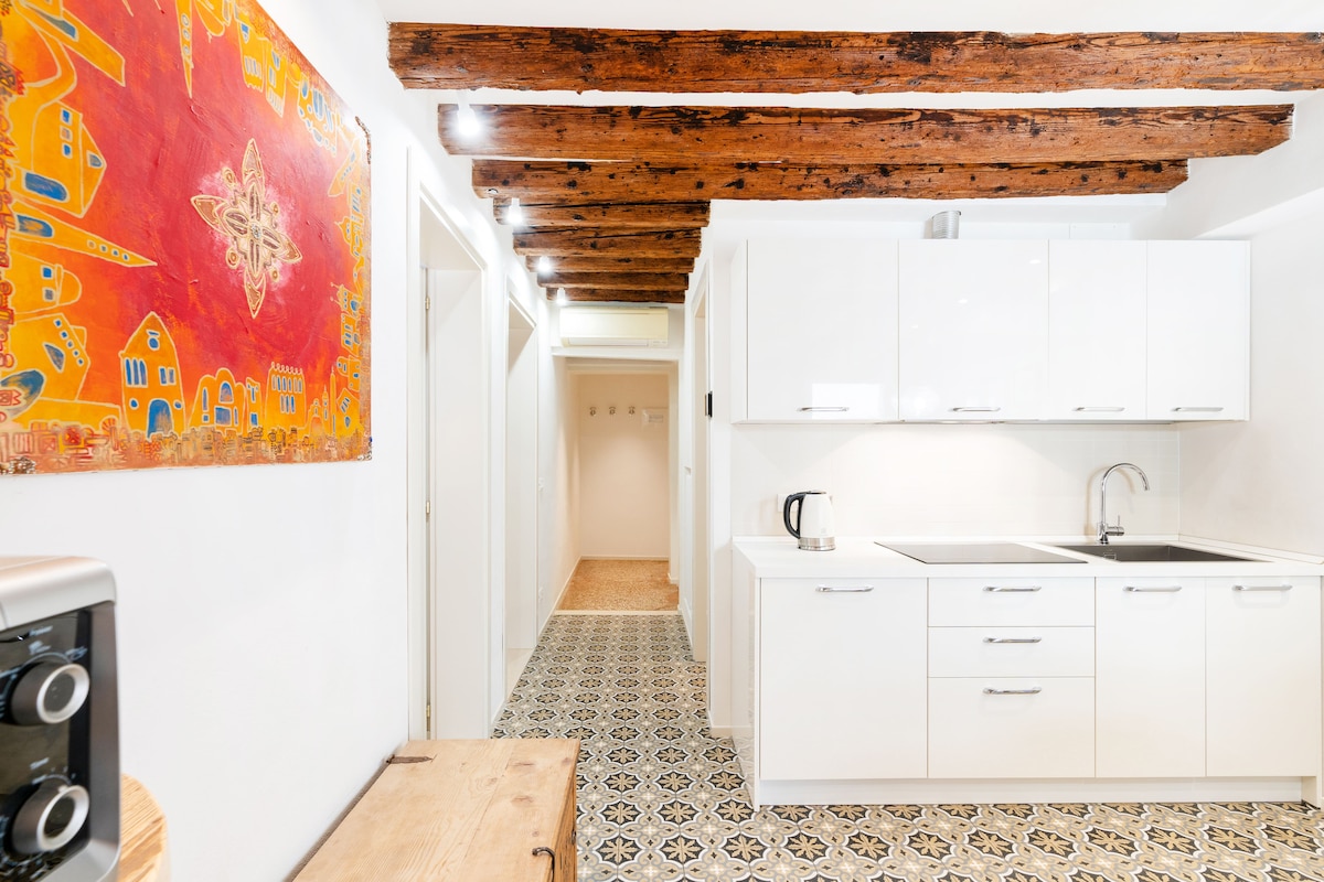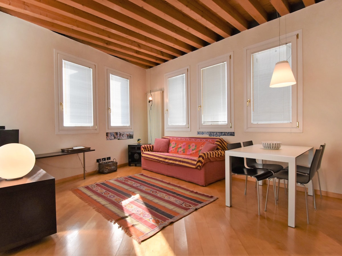 Nedidelis butas su dėmesiu detalėms idealiai tinka dviem žmonėms, įsikūręs už 10 minučių kelio nuo Šv. Morkaus aikštės. Iš vienos pusės atsiveria privatus vaizdas į kanalą, o iš kitos pusės - vidinis kiemas. Name yra oro kondicionierius ir neribotas belaidis internetas, o netoliese yra daug parduotuvių, delikatesų ir tipiškų restoranų. Vadovaujantis nuostatomis, kad būtų išvengta Covid-19 užkrato, po kiekvienos viešnagės atliekamas ozono valymo dezinfekavimas.