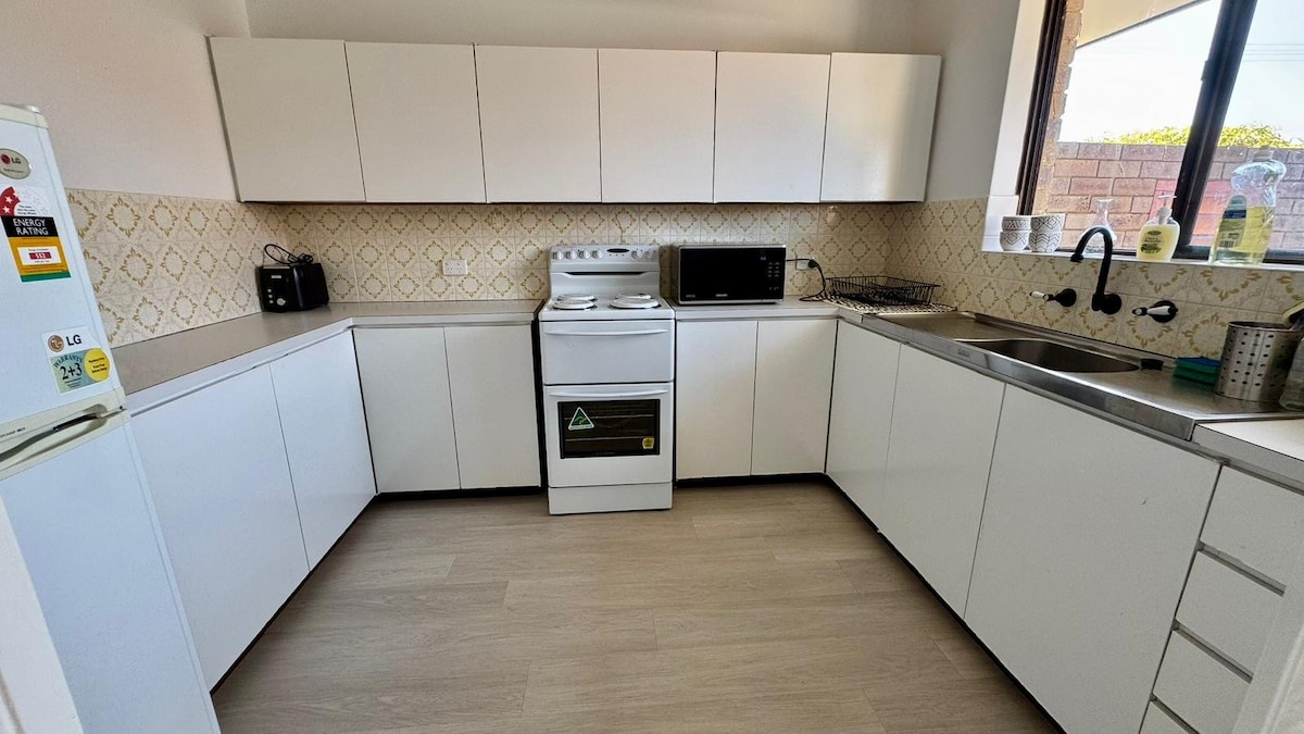 Jūra yra už kelių minučių kelio pėsčiomis nuo gatvės galo! Kaip ir populiari aitvarų banglenčių sporto vieta „Tvenkinys“. Mūsų senesnio stiliaus namai yra pakrantės Saugos įlankos (Rockingham) priemiestyje ir yra įrengti galvojant apie komfortą. Yra aptvertas galinis kiemas su žole ir sodais, kuriais gali mėgautis suaugusieji, vaikai ir šunys. Pingvinų sala, ekskursijos po delfinus ir fantastiški paplūdimiai, restoranai ir kavinės yra jūsų namuose!