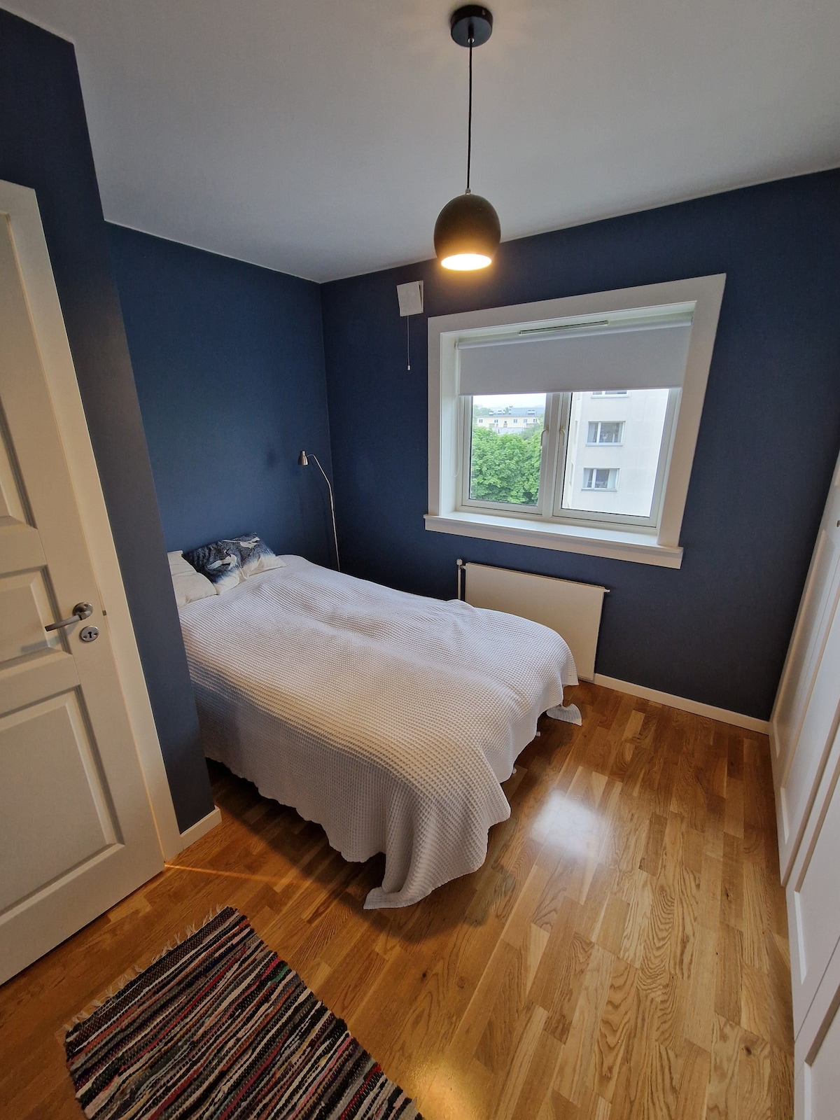 Cozy 1-bedroom apartment 32sqm 2.floor in Oslo, right next to the Akerselva river. The apartment has everything you need: a full kitchen, 140x200 cm bed, private bathroom with shower and washer, and a cozy living room with a sofa and dining table. There’s also a 3 sqm balcony where you can enjoy your morning coffee. You can use part of the wardrobe to hang up your clothes. Let me know what brings you to Oslo! From Oslo S: 18 min with buss 37/54 + 5 min walk. 37 buss goes 24/7