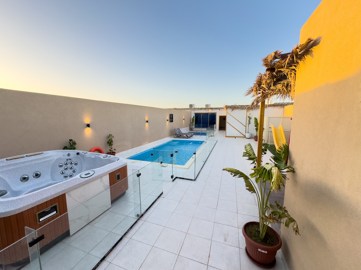 اكواخ الخليج كوخ فاخر بمسبح خاص وجلسات مميزه