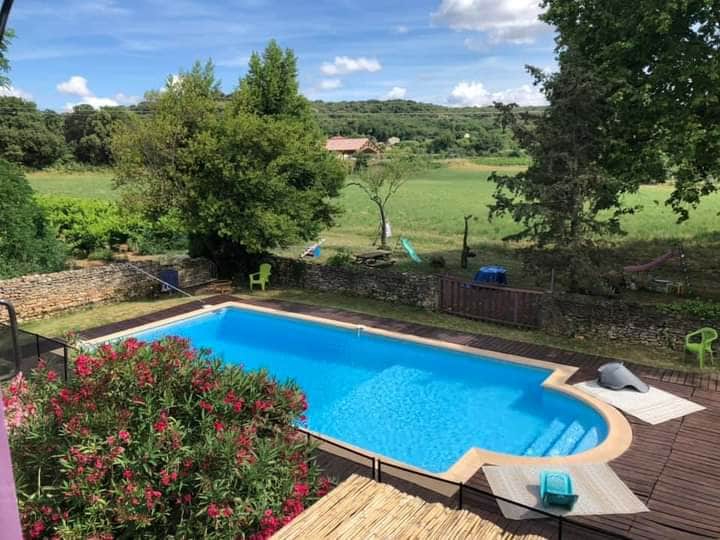 Apsistokite šiame 150 m² ploto sodyboje Saint-Nazaire, Gard, su privačiu baseinu ir dideliu sodu. Idealiai tinka 6 žmonėms, jame yra 3 patogūs miegamieji, iš kurių 2 yra oro kondicionierius viršuje. Mėgaukitės ramybe, terasa ir ramia aplinka. Netoli Gorges de l 'Ardèche, Pont du Gard ir Avignon. Wi-Fi ir privati automobilių stovėjimo aikštelė. Puikiai tinka atostogoms su šeima ar draugais, vos už kelių minučių kelio pėsčiomis nuo gražiausių Gardo lankytinų vietų.