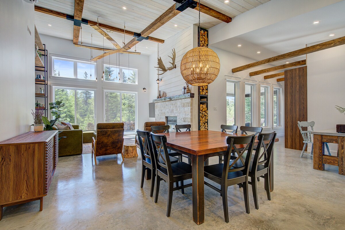 🏡 Švediškas, prestižinis poilsio namelis miško viduryje, 1,5 val. kelio nuo Monrealio. Puikiai tinka romantiškai išvykai, šeimai ar atokiai💻, jame dera skandinaviškas dizainas, komfortas ir ramybė. Vidaus/lauko 🔥 židinys jaukiai atmosferai 🛁 SPA ir pirtis visiškam atsipalaidavimui Greitas 📶 Wi-Fi ir darbo vieta derinant produktyvumą ir sveikatingumą 🌿 Nuostabi fenestracija gamtai Mėgaukitės ežeru ir takais ir mėgaukitės įsimintina viešnage!