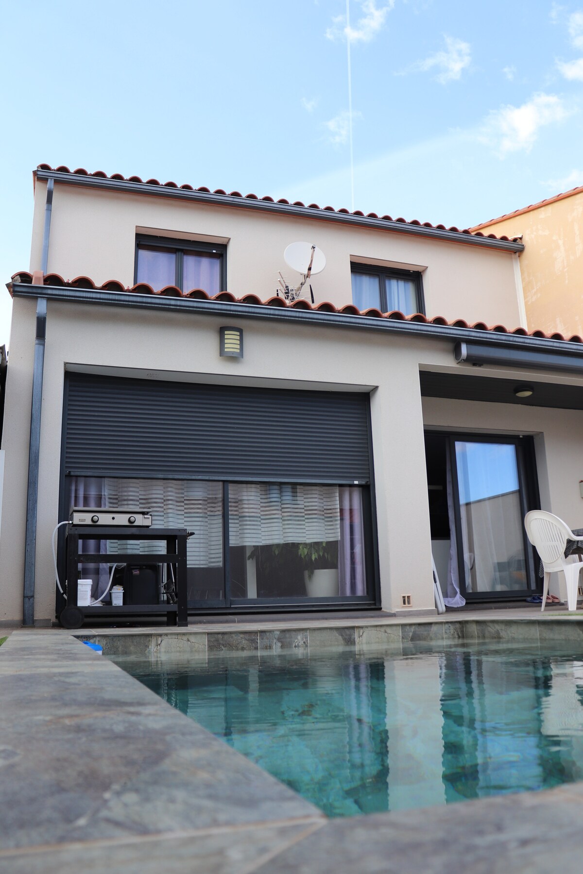 Ramioje gyvenamojoje vietovėje,netoli Collioure , dviejų pusių namas su sodu ,oro kondicionierius, dengta terasa, 6 vietų SPA, saulės dušas, plancha zona, vaizdas į Albères, 10 minučių nuo jūros , dušas, svetainė, valgomasis , LED ekrano televizorius, pilnai įrengta virtuvė (indaplovė, indukcinės viryklės, indai, mikrobangų krosnelė, orkaitė, 2 kavos aparatai), elektrinių durų garažas, skalbykla su šaldikliu, šaldytuvas ir skalbimo mašina 7 kg.