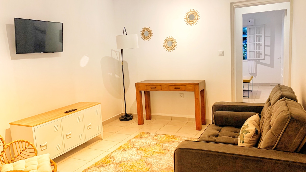 🌴 Nekantraujate atrasti Reunjono salą visiškai laisvai ir be jokių kompromisų tarp komforto, ramybės ir vietos? Apsistokite moderniame atskirame kambaryje su oro kondicionieriumi ir privačia terasa, kuris puikiai tinka norintiems apžiūrėti Sen Denį ir šiaurinę salos dalį. Savarankiškas atvykimas, spartusis Wi-Fi, rami atmosfera... Čia viskas sukurta taip, kad jūsų viešnagė prasidėtų puikiai nuo pat pirmos minutės. 👉 Atraskite poilsį ir susitelkite į save.