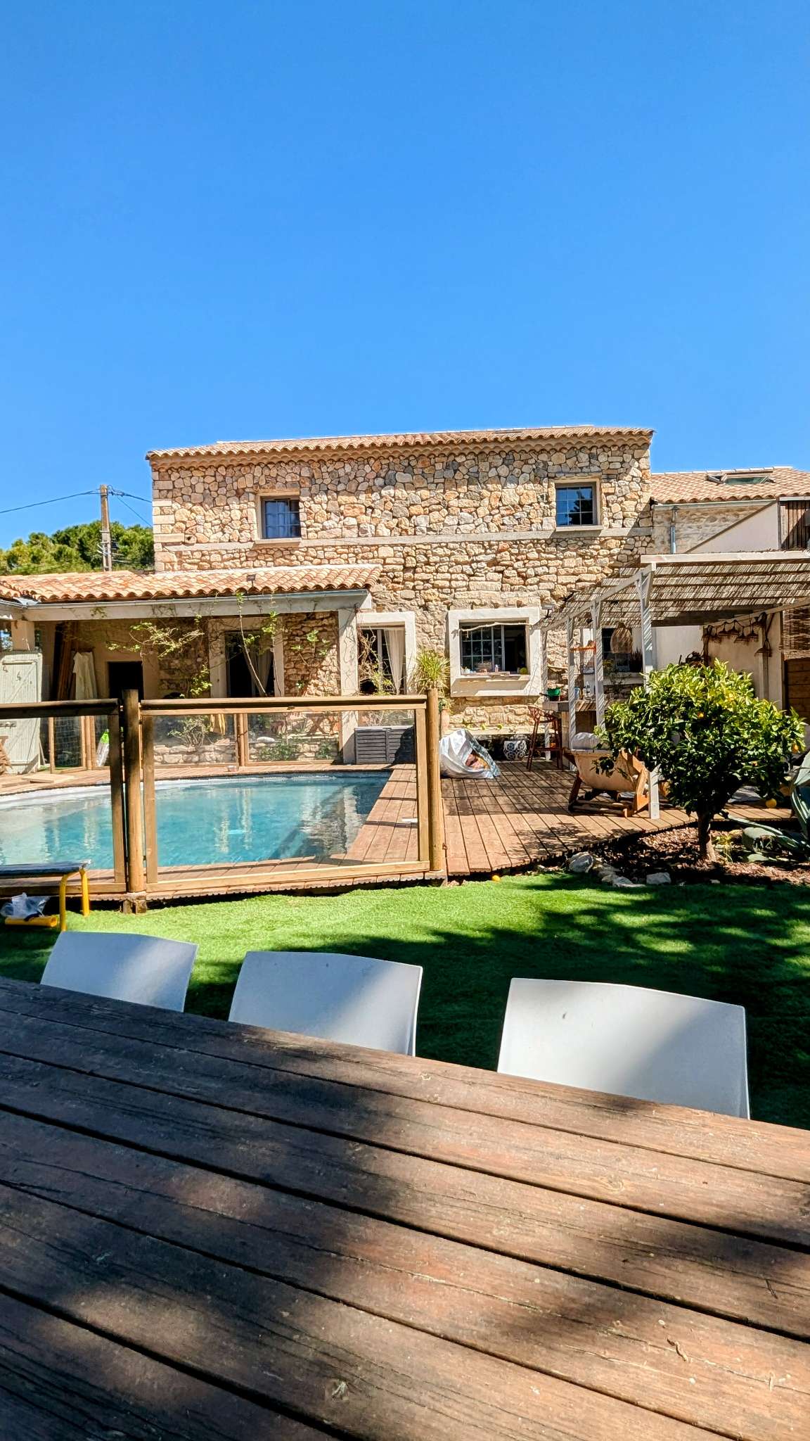 Atsipalaiduokite šiuose ramiuose ir stilinguose namuose. Įsikūręs Sussargues, Hérault, pačioje vynuogynų ir Garrigues širdyje, už 25 minučių kelio nuo Monpeljė ir paplūdimio, mažame kaime su visais patogumais, ši studija leis jums keliauti dėl jos apdailos. Studija yra prijungta prie mūsų namų, kuriuose gyvename su savo 2 vaikais. Malonus baseinas, apdorotas druska, nematomas. Sodas ir didelė terasa.