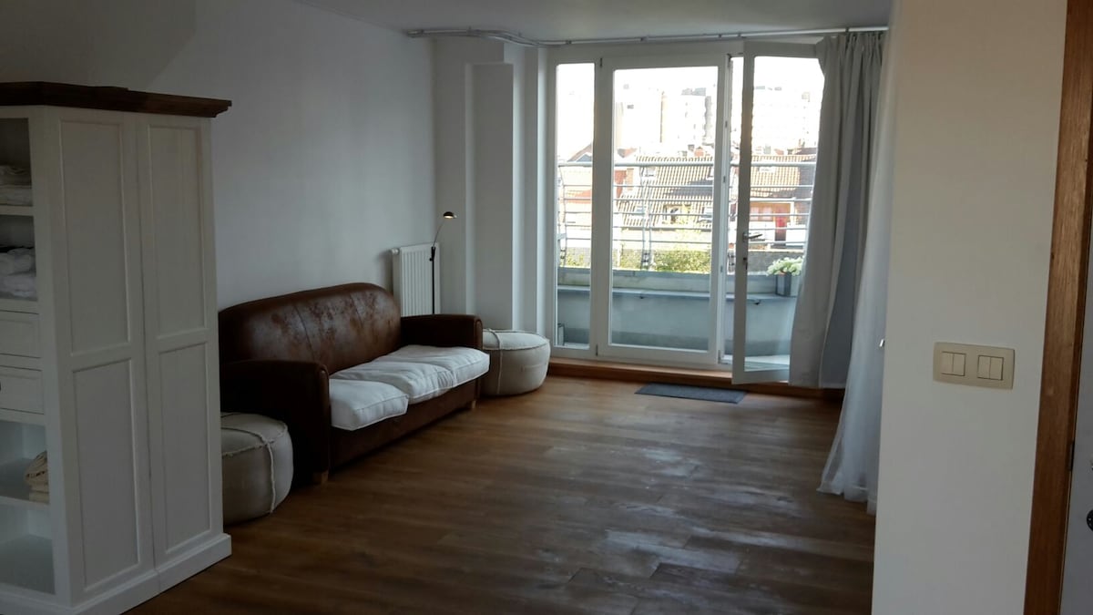 Mėgaukitės maloniu, skoningai renovuotu ir pilnai įrengtu būstu netoli Briuselio širdies. Netoli visų patogumų ir miesto centro (10 min. viešuoju transportu/Midi traukinių stotis 5 min. pėsčiomis) Viskas pasiekiama pėsčiomis. Prekybos centras, naktinė parduotuvė, žavingi butikai, restoranai, barai, Sablonų/Marolų rajonai, metro stotelė už 2 žingsnių nuo apgyvendinimo vietos.