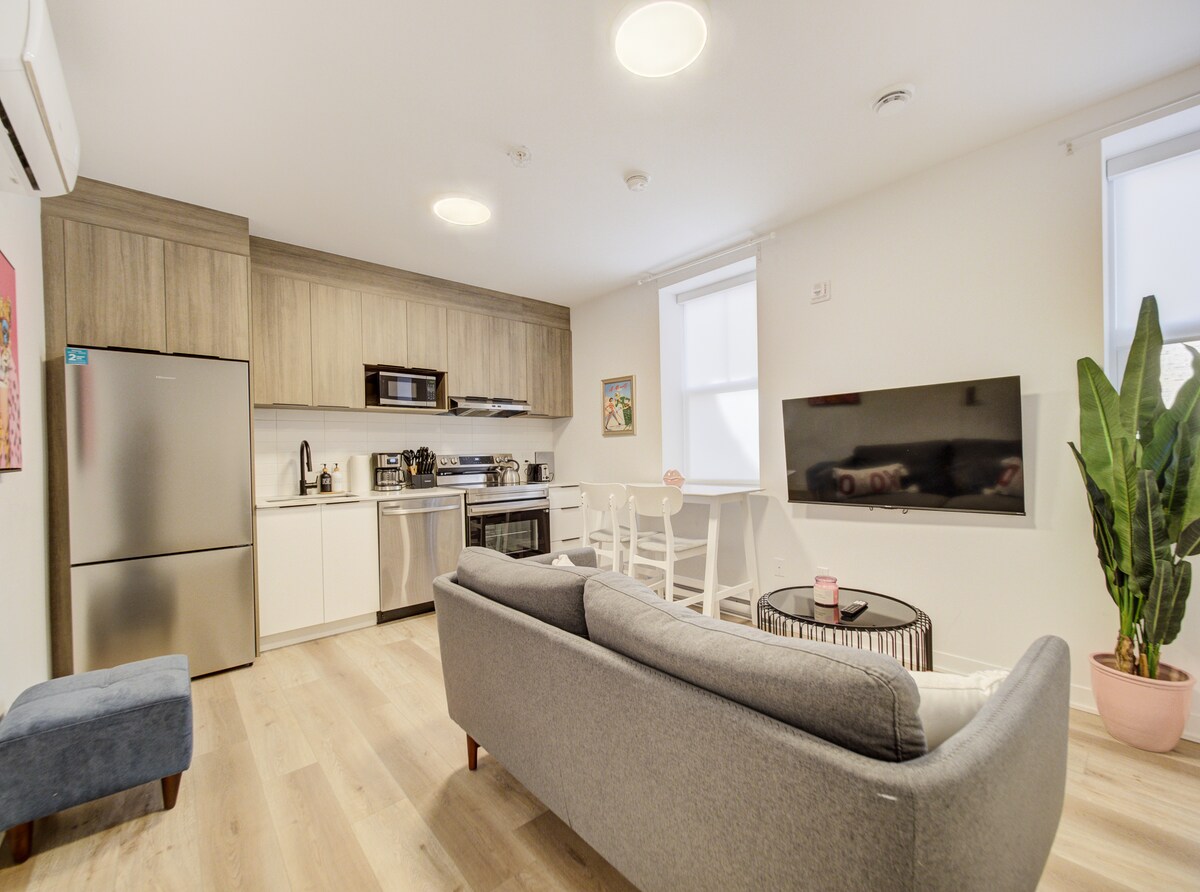 Mėgaukitės plynaukštės žavesiu šiame šviesiame, stilingame lofte! Natūrali šviesa užtvindo atviros koncepcijos erdvę, išryškina atviras plytų sienas, kylančias lubas ir modernų dizainą. Išeikite į lauką ir pasinerkite į gyvybingą, menišką rajoną, kuriame gausu madingų kavinių, butikų ir galerijų. Eikite į geriausius restoranus, teatrus, maisto prekių parduotuves ir turgus, metro stotis, dviračių takus ir Mont Royal - viską, ko reikia autentiškai, nepamirštamai viešnagei pačioje miesto širdyje!🚲🍽✨