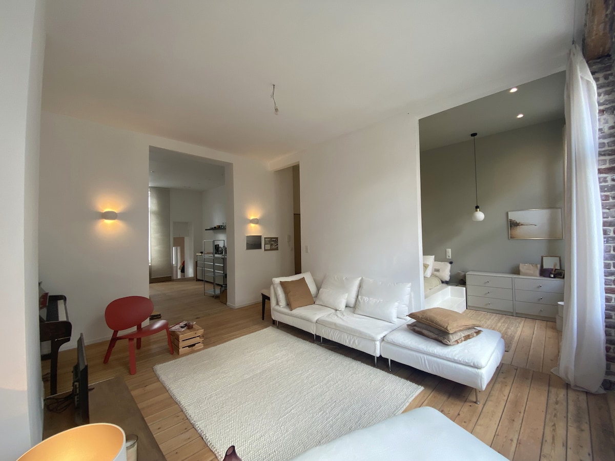 Įsikūrę istoriniame miesto centre ir visai netoli garsiosios Grand-Place, lengvai pasieksite lankytinas vietas ir stotis! Tradiciniame Briuselio miesto name nuo 1890-ųjų įsikūręs butas neseniai buvo renovuotas iki aukštos kokybės, todėl rasite viską, ko galite tikėtis, ir dar daugiau! Lengvas, madingas ir, svarbiausia, patogus su visais jums reikalingais patogumais. Vyšnia ant viršaus? Graži stogo terasa, kurioje galėsite mėgautis rytine kava!