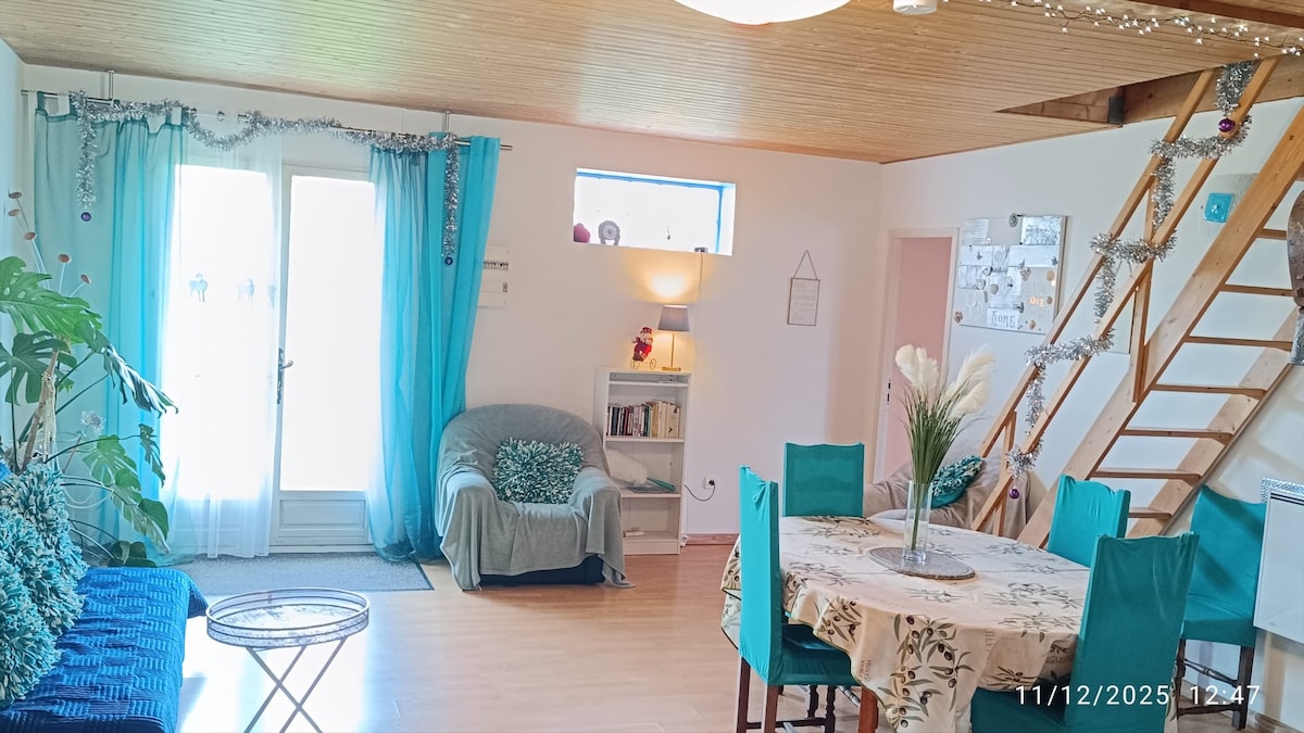 Nepriklausomas 60 m2 būstas su 2,85 m lubomis, idealiai tinkančiomis šeimoms ar verslo kelionėms. Šviesi svetainė, du patogūs miegamieji ir pilnai įrengta virtuvė. Reversinis oro kondicionierius. 820 m2 saugi automobilių stovėjimo aikštelė, tinkama furgonams ir sunkvežimiams. Greita prieiga: vos už 3 min. kelio nuo A68 (Tulūza-Albi). Savarankiškas atvykimas. Yra patalynė ir rankšluosčiai. Lavaur 5 min. St sulpice la pointe 5 min. Périphérique de Toulouse už 25 minučių kelio. Albi 25 min. Jardin Des Martels už 500 metrų.