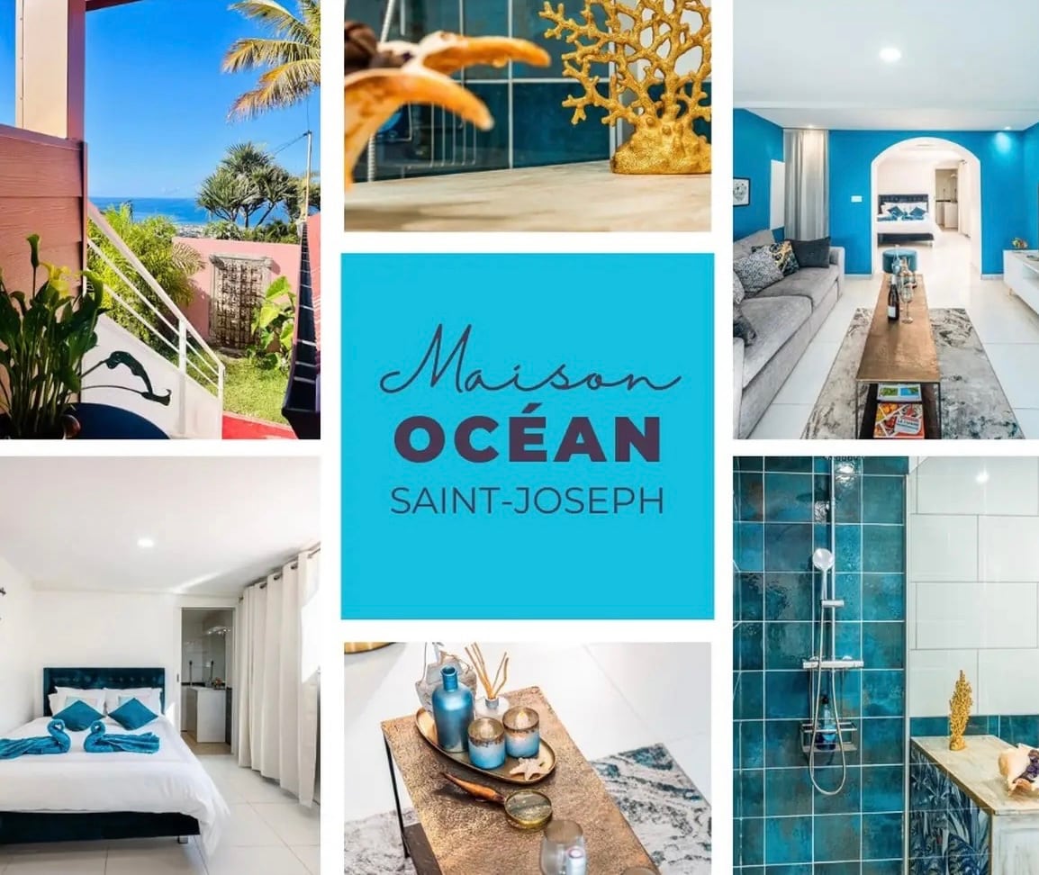 "Océan" est un maison rénovée entièrement à Saint Joseph, situé au calme pour profiter du calme et de l'intimité. Cette maison récemment rénovée pour 1 à 2 personnes dispose d'un salon joliment décoré, avec un mobilier confortable et une attention aux détails. Tout est nouveau et sélectionné avec beaucoup d’attention. De votre terrasse vous avez une vue sur l'océan et sur la ville.