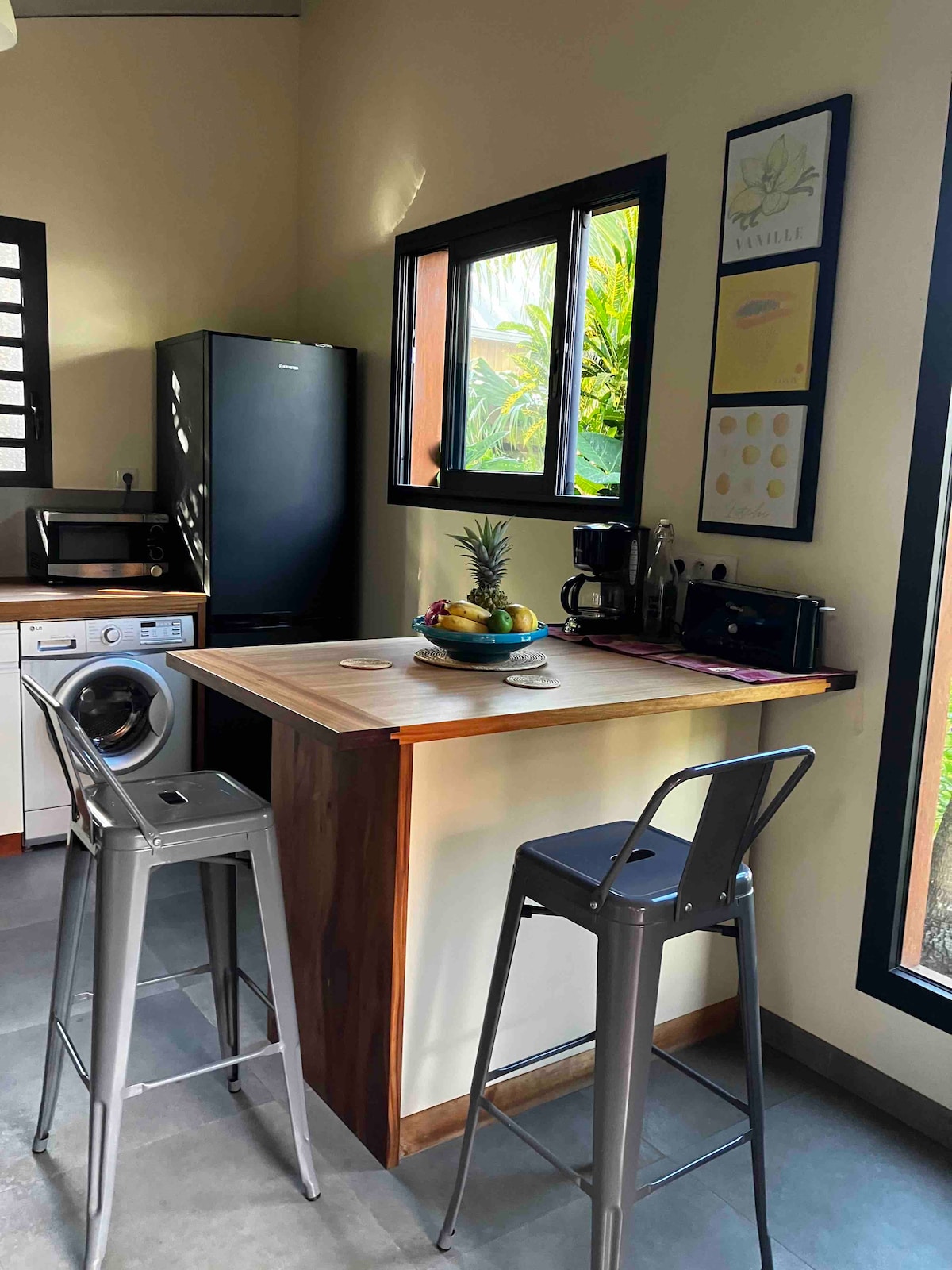 Tyli pertrauka vaismedžių apsuptyje, atogrąžų gėlės gamtos apsuptyje. Impasse à flank de ravine. Absoliučiai rami, paukštidė. Šiltas vienaaukščiai, lauko terasa medžių pavėsyje. Netoliese yra daugybė parduotuvių - prekybos centras - multipleksinis kinas - restoranai - oro uostas 10 minučių. Tipiškos vietos rinkos trečiadieniais, šeštadieniais ir sekmadieniais (Chaudron ir Sainte-Marie). Netoliese gausūs pasivaikščiojimai ir pasivaikščiojimai (tvenkiniai ir kriokliai).
