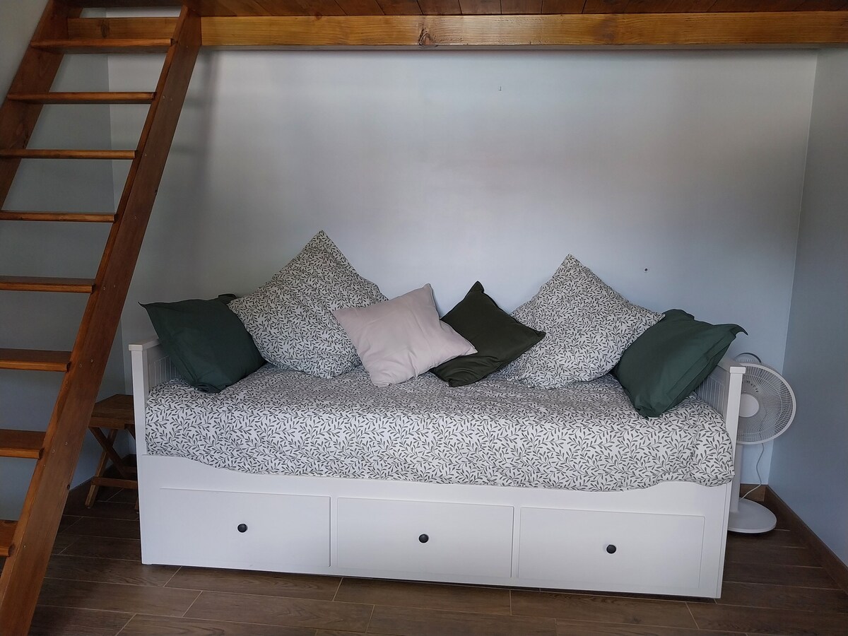 Mėgaukitės stilingu ir centriniu būstu. gerai suprojektuota studija su puikia komforto dvigule lova, išmaniąja televizija, maža biuro erdve su privačia automobilių stovėjimo aikštele, bendru sodu, taip pat dideliu baseinu ir jo terasomis netoli visų parduotuvių, parodų centro, klinikos ir oro autobusų gamyklos zonos, būnant pačioje kaimo širdyje. Jūsų vietoje, poilsio ir atsipalaidavimo masažo spintelė su atvykimu iš anksto.
