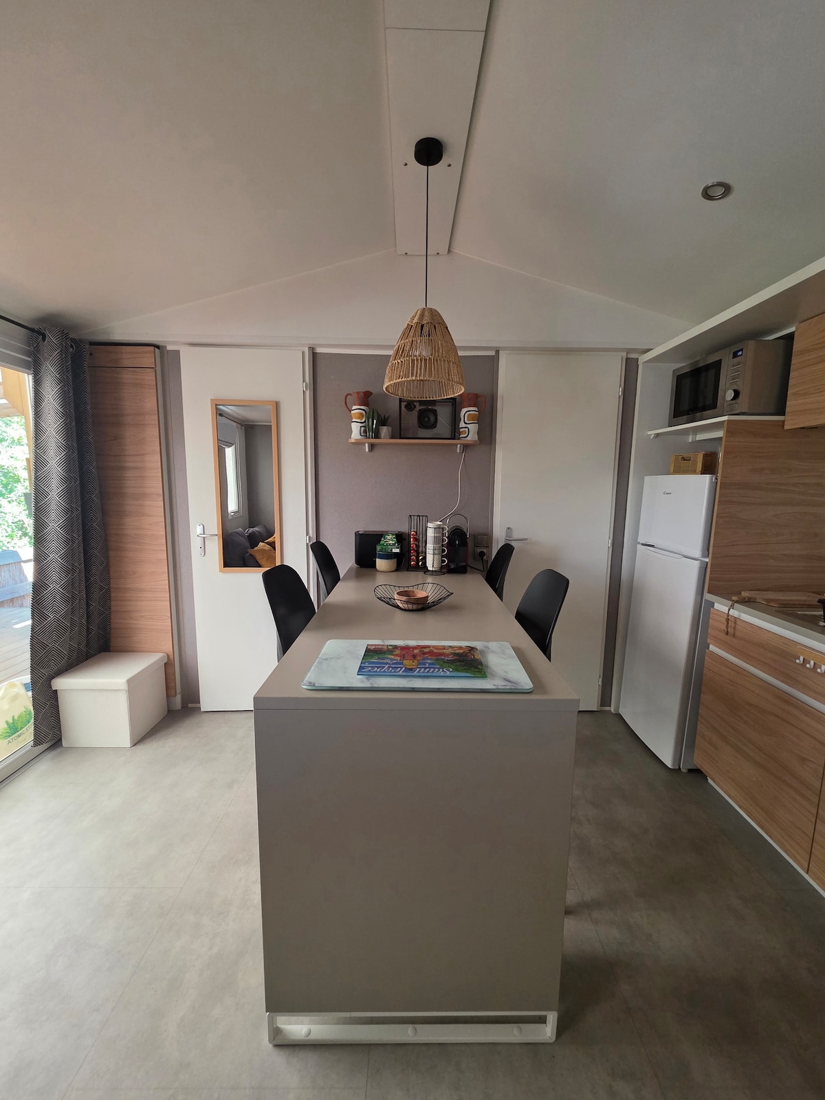 Gražus ir erdvus 40 m2 mobilusis namas, esantis Camping Parc Montana St James in Gassin, legendiniame Golf de St Tropez. Mobilus namas yra pilnai įrengtas, su oro kondicionieriumi, jį sudaro miegamasis su dvigule lova 160 x 200 ir du vaikų miegamieji, kurių kiekviename yra dvi lovos. Lauke mobiliuosiuose namuose yra didelė ir graži medinė terasa su šaldytuvu ir planča jūsų kepsninėms. Stovyklavietėje yra daug užsiėmimų, taip pat 3 baseinai ir restoranas.
