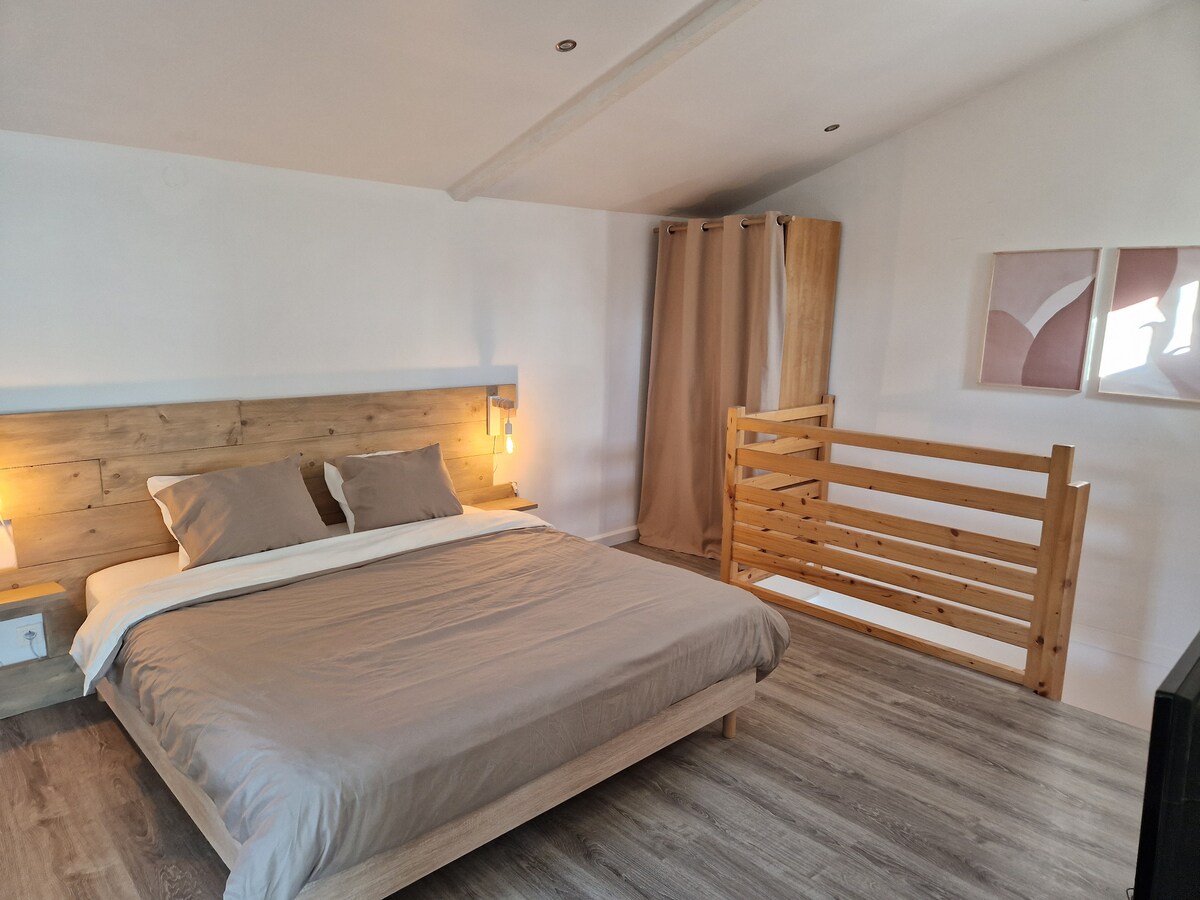 Romantiškiems ar žavingiems vakarams atostogos idiliškoje aplinkoje už 4 km nuo Uzes. Šioje ramioje ir elegantiškoje apgyvendinimo vietoje rasite visas paslaugas, kad galėtumėte praleisti malonią ir malonią kokono akimirką jaukioje ir neregėtoje vietoje... karališko dydžio lova 180x200, sūkurinė vonia (SPA), dušas XXL, lauko romėniška vonia, kad jus atgaivintumėte (2 mx1,50 m).