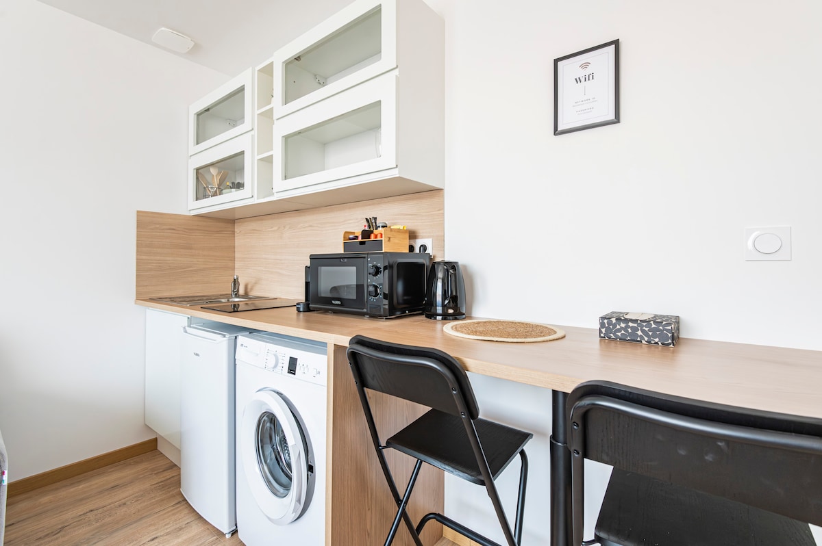 Atvykite ir mėgaukitės pabėgimo nuo kasdienybės ir atsipalaidavimo akimirka šiame žavingame bute su privačiu poilsio baseinu (į jį niekas nežiūri) Reimso miesto centre, tarp Rue de Vesle (prekybos gatvės) ir nuostabiosios Rue Buirette gatvės. Įsikūrę vos už kelių kilometrų nuo Place d 'Erlon, būsite netoli visų patogumų. Mūsų vietinio gamintojo šampanas laukia jūsų vėsioje vietoje! Atkreipkite dėmesį: jokių vakarėlių, jokių vakarinių susibūrimų, kameros prie įėjimo į kondominiumą, kuri tikrina įeinančių svečių skaičių.
