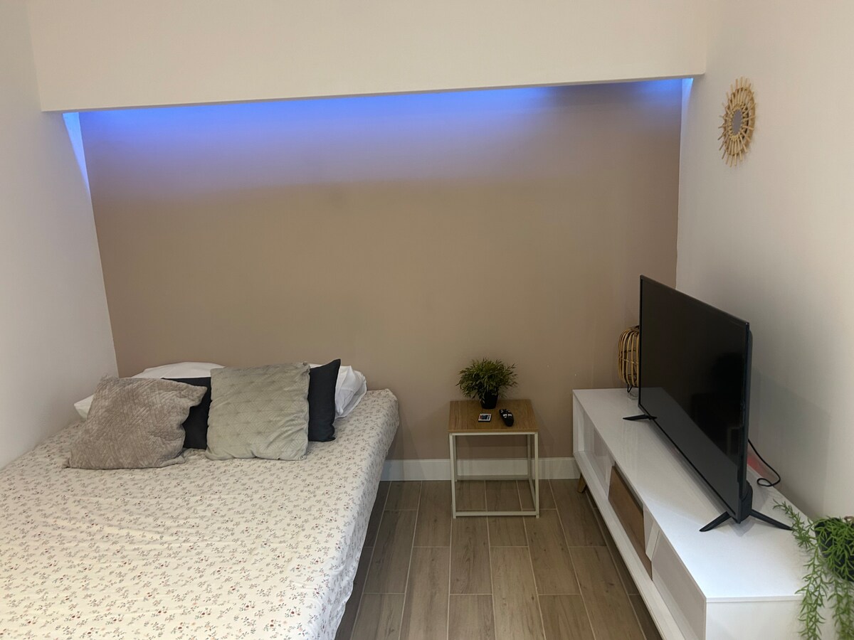 42 m2 butas pirmame aukšte, kurį sudaro didelė svetainė ir įrengta virtuvė, vonios kambarys su dušu ir tualetu ,vienas miegamasis. Jis yra už 15 minučių kelio nuo Provanso Ekso, už 15/20 minučių kelio nuo Estaque/Vieux uosto, marigane oro uostas , Aix TGV/Marseille st Charles traukinių stotys automobiliu. - Lidl , Intermarche,Leclerc kazino ,netoliese -Airbus ir veiklos zona Les Milles 10-15 minučių - Miegamojo lova 160/200 - Vienu spustelėjimu užsikimšę du žmonės. - Virtuvės orkaitė, viryklė, šaldytuvas - Netoliese esantis prekybos automatas.