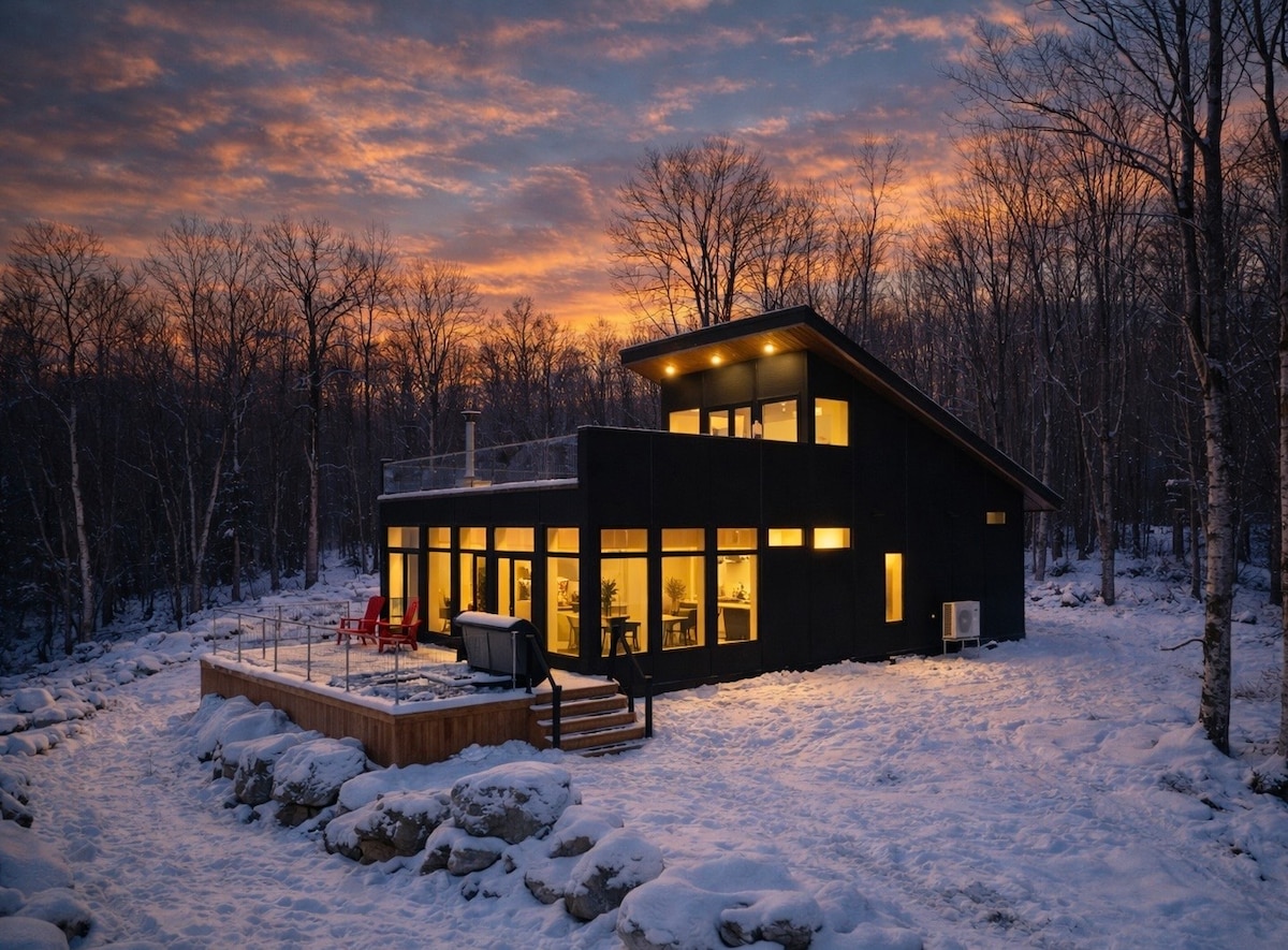 ✨ Escape to Chalet Balétor – Your Lakefront Paradise in the Laurentians 🌲🛶 Atsipalaiduokite šiame moderniame poilsio namelyje Lac Sarrazin, vos už 1 val. 20 min. kelio nuo Monrealio ir 2 val. 15 min. kelio nuo Otavos. Pastatytas 2020 m., tai puikus prabangos ir laukinės gamtos derinys — puikiai tinka šeimoms, poroms ar nuotoliniu būdu dirbantiems darbuotojams. Kas patinka svečiams: ✔️ Sūkurinė vonia su vaizdu į ežerą ✔️ Privatus dokas, irklentė ir kanoja ✔️ 12 privačių akrų miško ✔️ Į pietus nukreipta saulė visą dieną ✔️ Spartus Wi-Fi + išmanioji televizija ✔️ Gurmaniška virtuvė + prabangi patalynė CITQ #302011