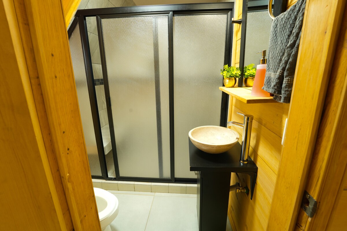 Disfruta de un lugar único, en la privacidad de una cabaña alpina ecológica de dos pisos, situada en un terreno de 4 hectáreas de pinos en medio del bosque. Cuenta con 2 amplias recámaras, la superior tiene techo panorámico para disfrutar del increíble cielo estrellado desde la comodidad de tu cama. Además tiene wifi satelital, cocina equipada, amplia área de sala/comedor con ventanal, tapanco con sofá cama, terraza con mesas al aire libre, asador de carbón y área de juegos infantiles.