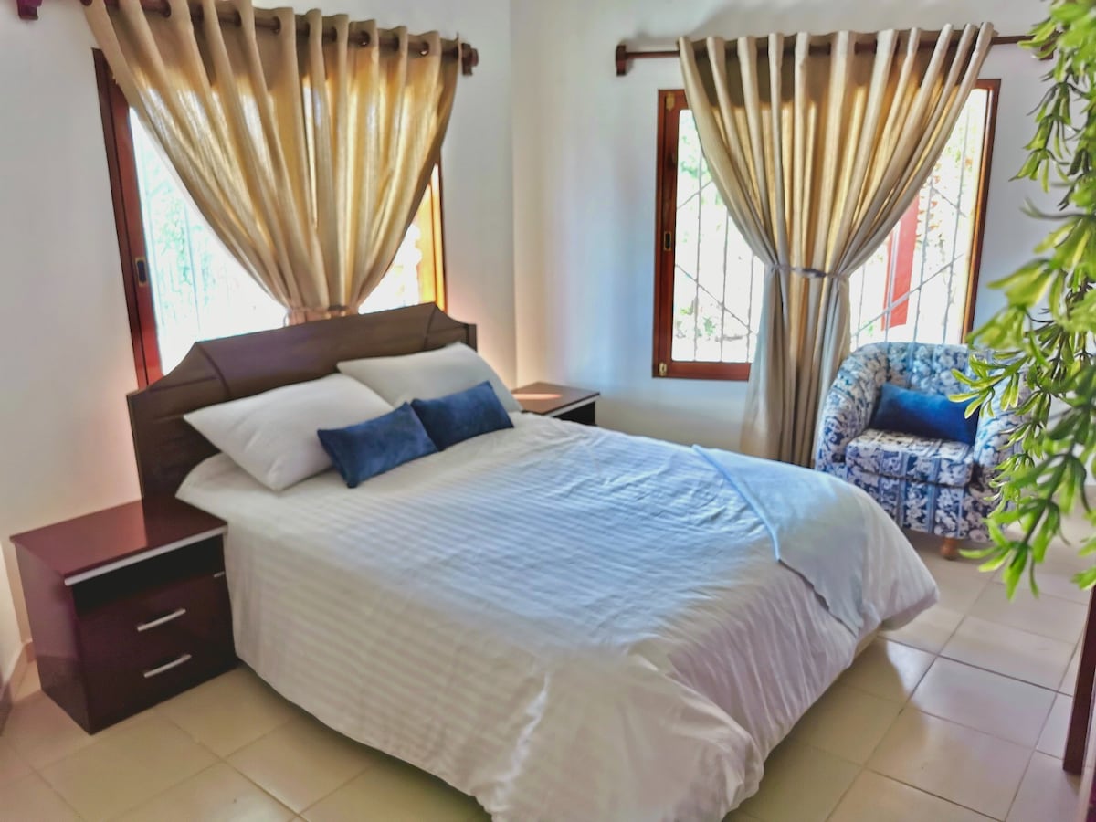 Mūsų trobelėje siūlomas komfortas ir privatumas: pagrindinis miegamasis su privačiu vonios kambariu ir mezoninas su dviem erdviomis lovomis. Pilnai įrengta virtuvė, valgomasis, svetainė su židiniu vėsioms naktims. Sodas su kepsnine churrascos. Įskaičiuotas garažas. Tik penki kvartalai nuo pagrindinės aikštės, iš kurios atsiveria kvapą gniaužiantys vaizdai. Nepamirštamos atostogos Samaipatoje laukia jūsų čia!