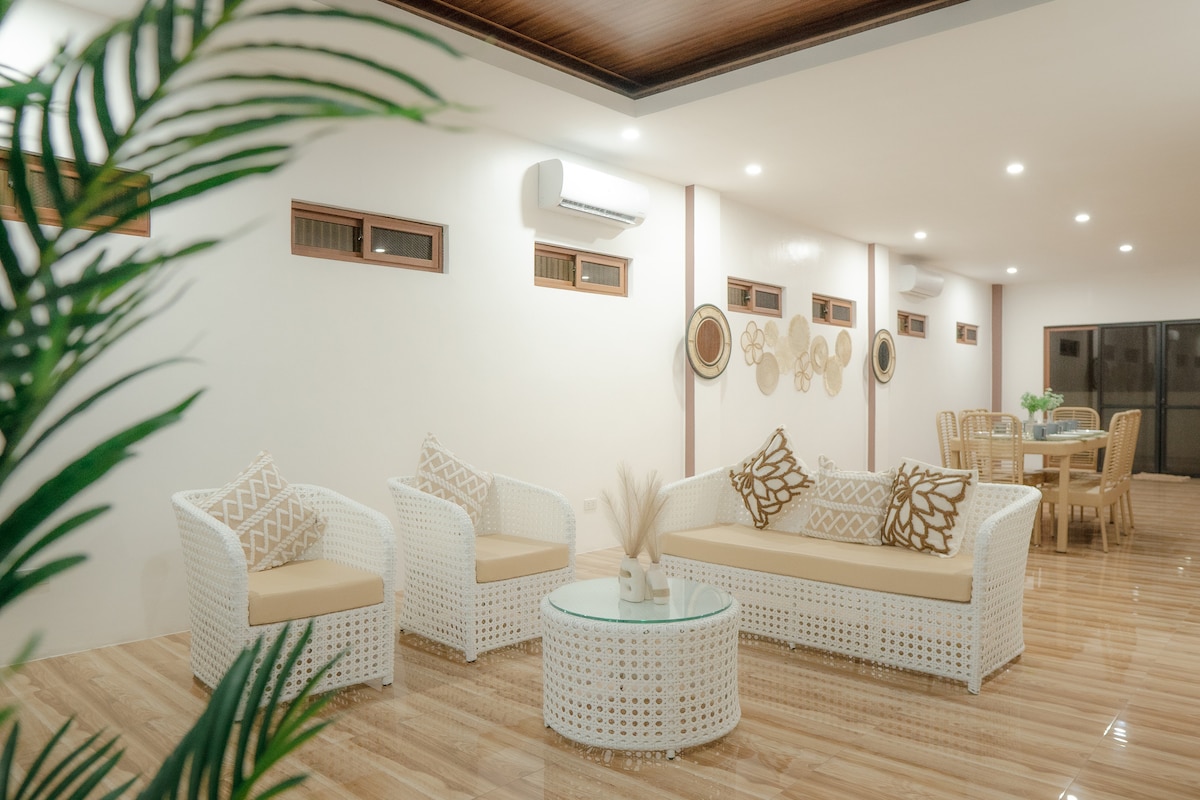 Tai trijų miegamųjų pilnai įrengtas svečių namas su prieiga prie paplūdimio ir baseino netoliese esančiame kurorte (prieiga priklausytų nuo viešnagės naktų skaičiaus), kuris yra už maždaug 6 minučių kelio pėsčiomis nuo vietos (gali būti ilgesnis pagyvenusiems žmonėms). Visuose kambariuose yra oro kondicionierius, užtikrinantis patogų miegą, taip pat gerai įrengta virtuvė ir lauko kepsninė jūsų maisto gaminimo malonumui. Netoliese esančiame paplūdimio kurorte yra baseinas tiek vaikams, tiek suaugusiems, balto smėlio paplūdimiai ir restoranai.