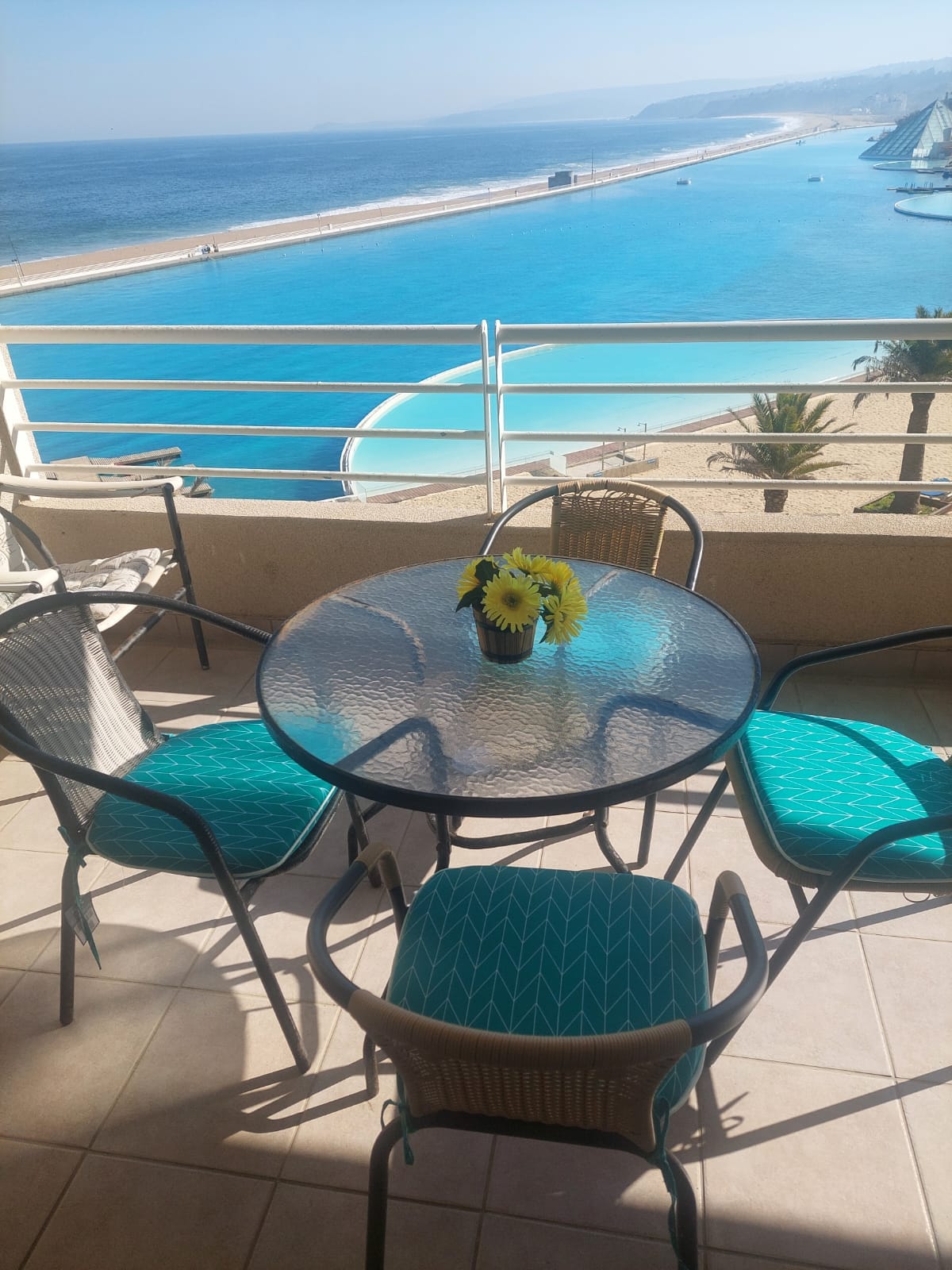 Hermoso departamento con una maravillosa vista al mar, con dos habitaciones, dos baños, cocina americana equipada. Cuenta con WIFI, las habitaciones y living con televisor y TV cable. Amplia terraza con impresionante vista al mar. Acceso directo a la playa y al lado de un bosque de pinos. Además hay un minimarket muy cerca. La tarifa no incluye sábanas ni toallas. Puedes traer las tuyas o, si te es más cómodo, puedes consultar por nuestro servicio de arriendo para la duración de tu estadía.