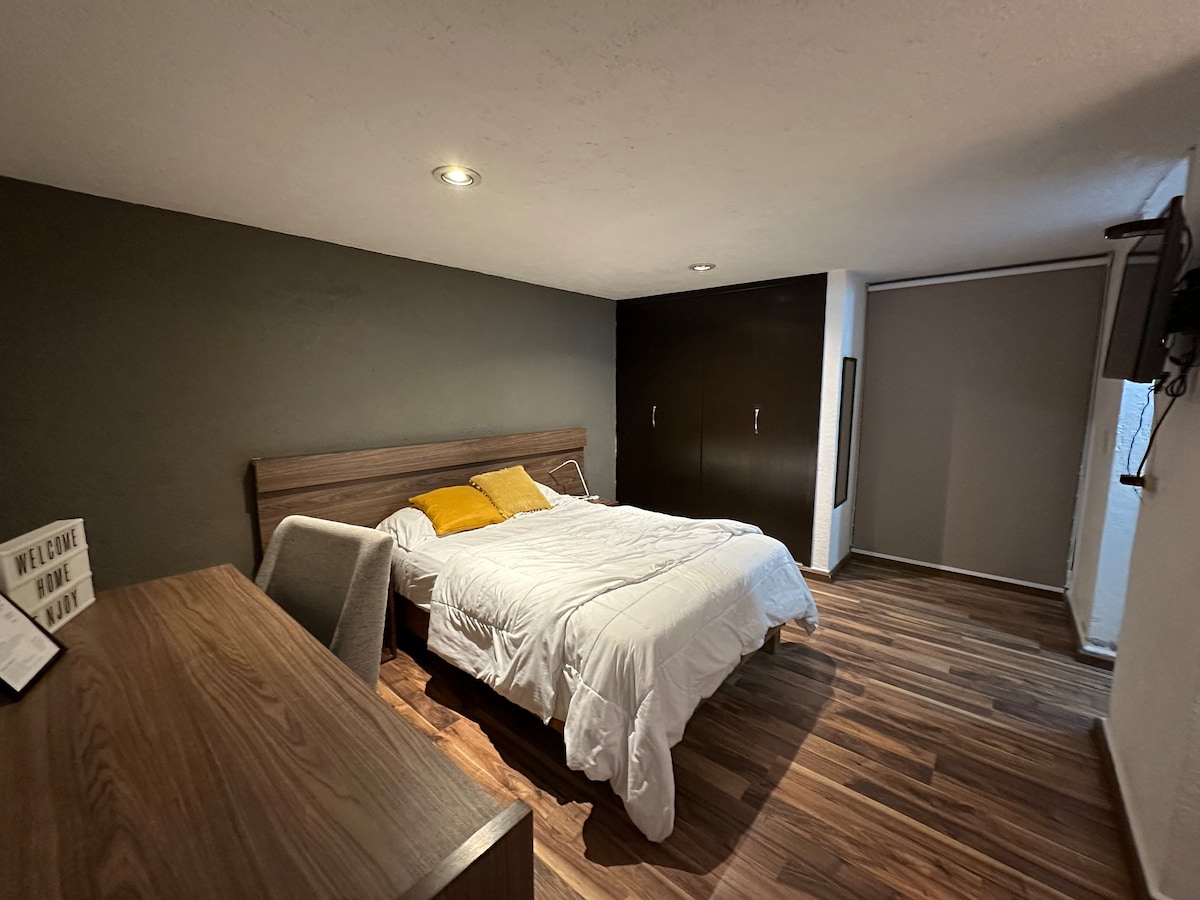 Desde este alojamiento céntrico todo el grupo podrá tener fácil acceso a todo.transportes para ir a toda la ciudad a dos cuadras, una colonia privada dónde no se escucha ningún ruido, pueden salir a caminar sin peligro, la recamara es fresca
