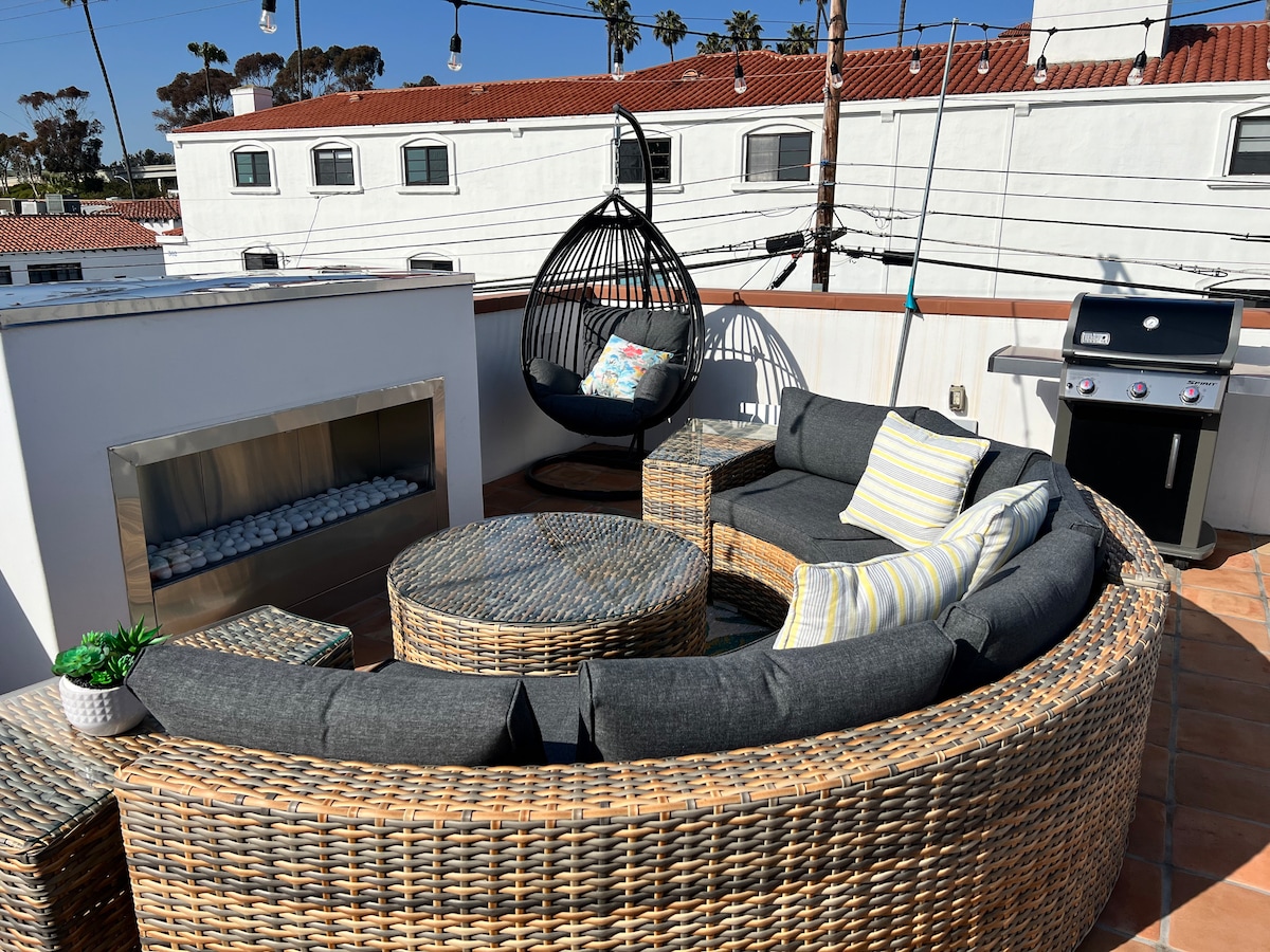 Visiškai naujame 1700 kv. pėdų miesto name yra 600 kv. pėdų + privatus stogo viršutinis denis su vaizdu į vandenyną ir židiniu. 10 min. pėsčiomis iki paplūdimio. Geriausi San Clemente restoranai ir apsipirkimas už 2 kvartalų. Atminties putplasčio lovos, gurmaniška virtuvė, aukščiausios klasės valgomasis ir svetainė , židinys , 70colių t.v. Twin virš pilno dviaukščio miegamojo, murphy queen miegamasis/biuro meistras su karaliumi, balkonas. 2,5 vonios, skalbyklė/džiovyklė , vidaus automobilių stovėjimo aikštelė. Viskas nauja 2021 m. Oazė idealioje vietoje. Populiariausi 5% visų Airbnb skelbimų dėl priežasties! Mums gerai!!!