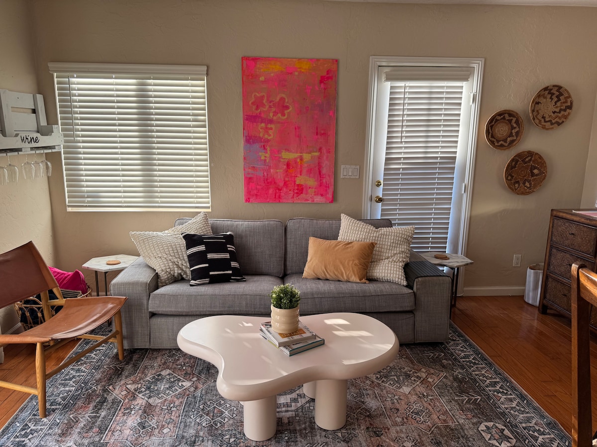 Sveiki atvykę į mūsų saulėtą ir ramią studiją Mažosios Italijos širdyje – minkštą, romantišką poilsį, pripildytą natūralios šviesos ir ramios, estetinės atmosferos. Mėgaukitės minimalistiniu, skoningai parinktu dekoru, aukštos kokybės patalyne ir jaukiais akcentais. Atsipalaiduokite ant minkštos sofos, pasisukiokite hamake arba atsipalaiduokite žiūrėdami mėgstamas laidas per išmanųjį televizorių. Puikiai tinka poroms, keliaujantiems vieniems ir visiems, ieškantiems ramios, gražios vietos San Diege.