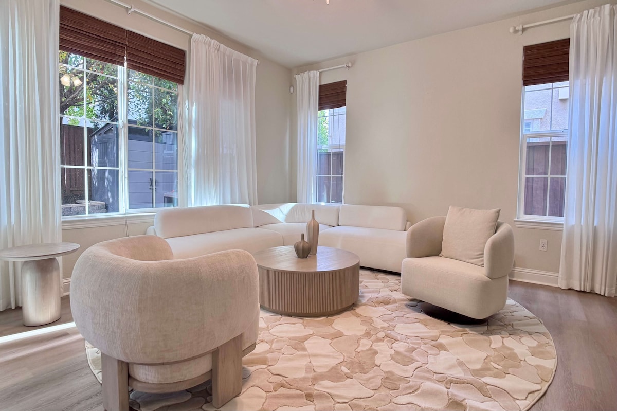 Nuostabūs vaizdai ir ramybė laukia jūsų mūsų moderniame prašmatniame sodyboje. Sodrioje privačioje aplinkoje akimirksniu būsite nuvežti į atpalaiduojančią kelionę Kalifornijos centrinio slėnio širdyje. Šildykite prie židinio, išeikite į ūkį arba atsipalaiduokite su gera knyga jaukioje svetainėje. Su didelėmis lubomis ir prancūziškomis durimis lengva rasti savo asmeninę erdvę. Vos už valandos kelio nuo San Fransisko vietovę, kurią lengva rasti, tačiau sunku išvykti.