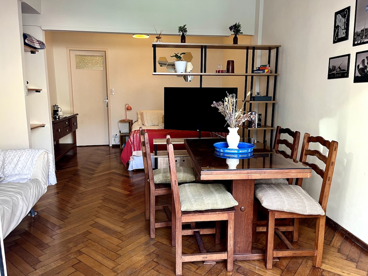 Bienvenidos a nuestro moderno estudio en el centro histórico de Buenos Aires, ubicado en el piso 14. Este espacio ofrece comodidad, seguridad y acceso a los principales puntos turísticos. Situado en una zona tranquila cerca de la Plaza de Mayo, con vistas espectaculares desde su balcón privado. Seguridad 24/7 y cerradura electrónica. Cocina completamente equipada. El edificio cuenta con piscina en la terraza, coworking, museo de sitio, cochera, laundry, auditorio, cafetería y restaurante.