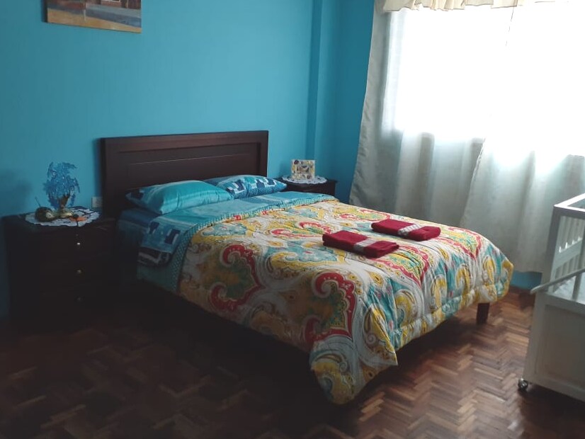 Būsite pačioje Vilkabambos širdyje, už šimto metrų nuo centrinio parko, kur galėsite naudotis restoranais, bankomatais, žirgų nuoma, dviračiais, taksi ir kt. Galite eiti į upę, į gražios gamtos apsuptus takus arba kopti į Mandango - būdingą miesto kalvą. Bute yra du kambariai: vienas su balkonu ir dvigule lova; kitame yra dvi lovos: viena su dviem lovomis, o kita su lova ir pusė; Yra svetainė, virtuvė ir valgomasis.