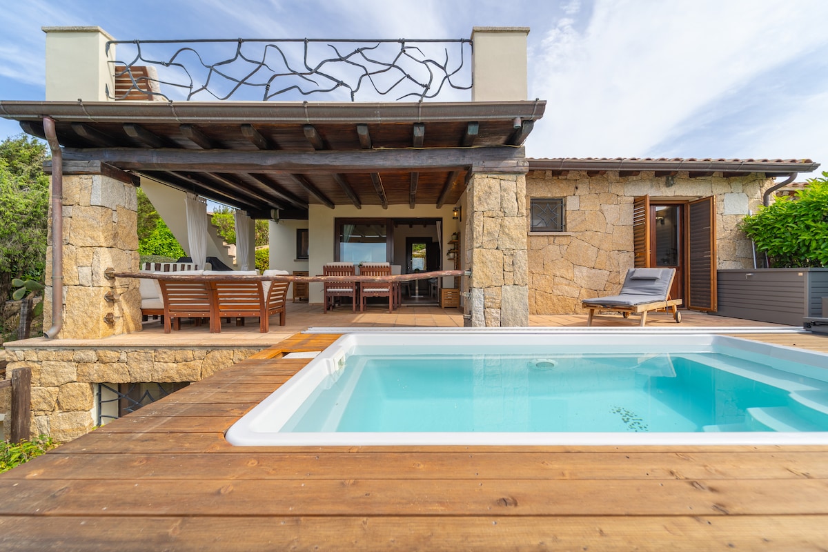 Nepriklausoma akmeninė vila Porto Tavernos jūroje. Puikiai tinka šeimai ar 2 draugų poroms. 5 vilų kurorte su didžiuliu pušynu; būdingos granito uolos paverčia jį sodu. Vieta, vaizdas ir sodas yra išties unikalūs ir garantuoja privatumą bei atsipalaidavimą. Galutinio valymo (120 €) ir patalynės (25 € asmeniui) išlaidos į galutinę kainą neįskaičiuotos ir turi būti sumokėtos atvykus.