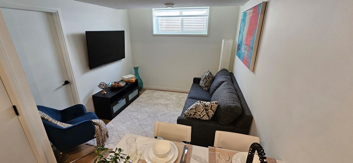 Šis rūsio apartamentai yra uždari, turi atskirą įėjimą ir turi visus būtinus daiktus, kad taptų jūsų namais toli nuo namų! Norėdami patekti į apartamentus, turėsite pakilti dviem (2) laiptais. Prie durų yra apsaugos kamera. Augintiniai laukiami! Praneškite mums, jei atvyks jūsų pūkuotas draugas, kad galėtume pasiruošti jo atvykimui. Peržiūrėkite mano keliautojo vadovą, kuriame rasite mano mėgstamiausių vietų pavalgyti ir pažinti Sent Albertą ir Edmontoną sąrašą!